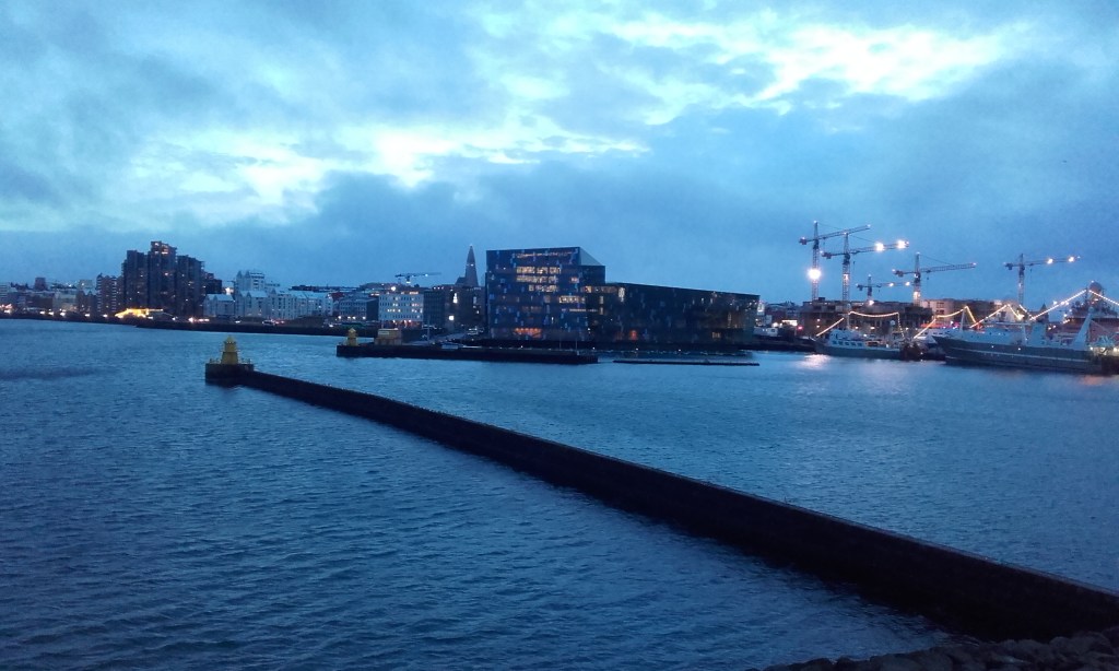If you look past Harpa towards the harbour you can see a large mound at the end of the harbour arm. We thought it looked like a big bosom, and as we had no idea of its name or purpose, that was the name we gave it. We now know that this mound is called Þúfa and it is in fact a very large work of art which was created in 2013.