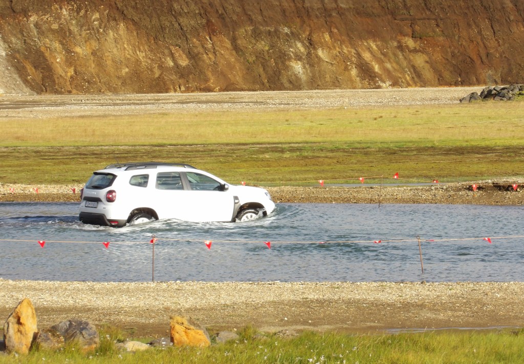 Many roads are narrow at times [even Route 1] and it’s difficult to not get distracted by the natural beauty on both sides of the road. I saw several wrecked cars on this trip which helped to remind me to stay focused, [see above right]. We made sure that our car was fully tanked up every morning as petrol stations can be scarce between the towns. These are often self service but instructions are given in English so it’s not rocket science. Be prepared for your car to get very dirty, [see our car above left]. It goes without saying that if you are intending to ford any rivers- do your research, check the hire company small print and only attempt this if you are sure you can make it to the other side! [the grey car below did not make it].