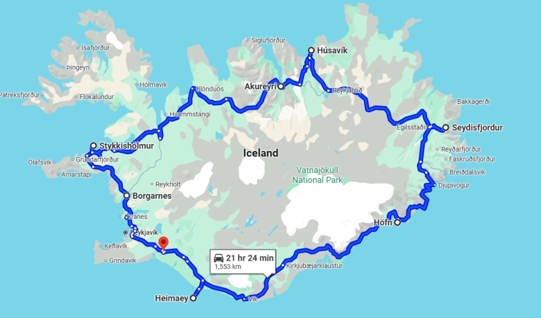 | The following websites are essential if you are intending to drive around Iceland: Epic Iceland is a great resource with loads of info on driving the ring road. https://epiciceland.net/ Guide to Iceland has loads of info on what to see around Iceland-https://guidetoiceland.is/travel-iceland/drive Weather info- https://en.vedur.is/weather/forecasts/areas/ Road info- https://www.vegagerdin.is/ Weather and road conditions- https://safetravel.is/ |