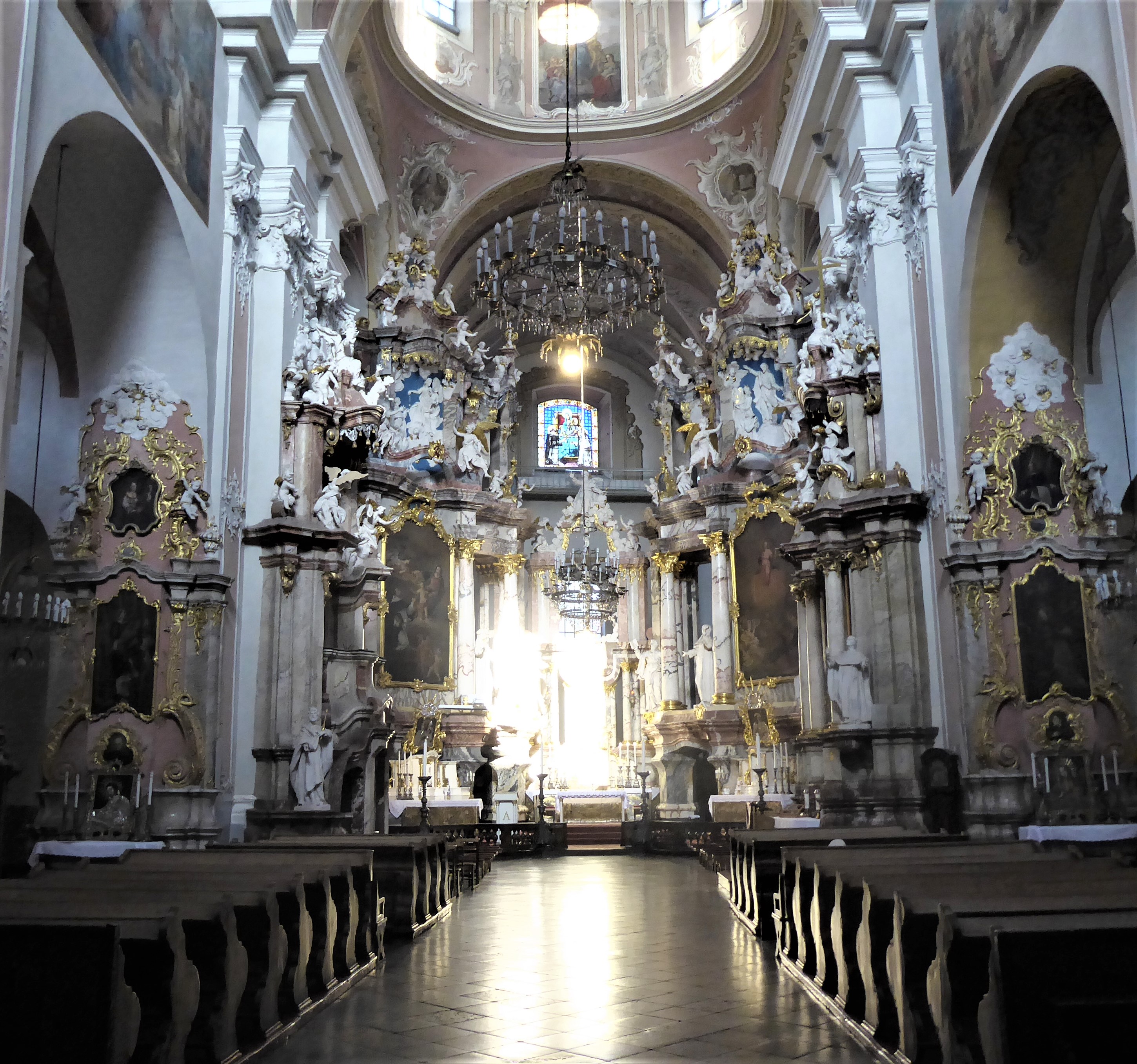 The City Centre and the Old Town have so many churches [as well as a few monasteries and a synagogue] that it warranted a page to itself on my website. Some are stunning on the outside and demand further investigation, while others are squeezed in between buildings that give little indication what there is to offer through their doors [if they are not locked]. They are all unique and beautiful on the inside, so if you see a church I would take a peek. I recommend starting at the Cathedral and then walking up Pilies Gatve towards the Gates of Dawn where many of the churches listed below can be found.