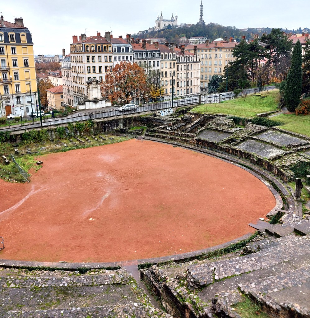 At the bottom of La Croiz-Rousse are the remains of a Roman Theatre which was built in 19AD at the confluence of the rivers Saône and Rhône [which is now to the south]. It was closed to visitors when I ventured there in 2023 but you can still get a good view and it’s worth a walk around.