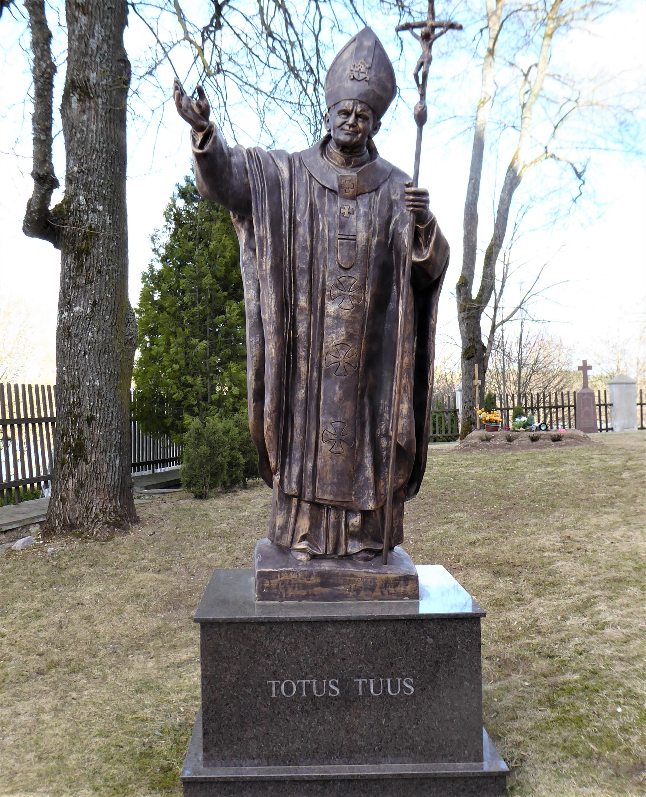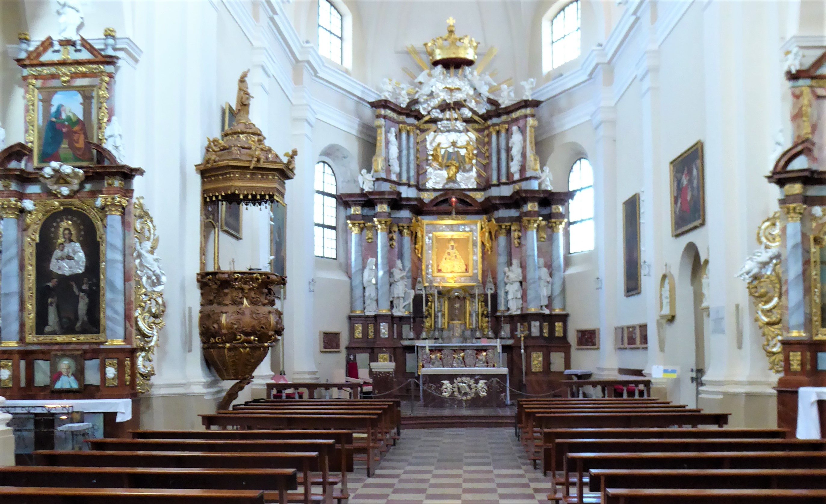 The Trakai Baslica of the Visitation of the Blessed Virgin Mary is a 15th Century Church that has a lovely Baroque interior as well as a statue of our most favritist smileyist Pope outside.
