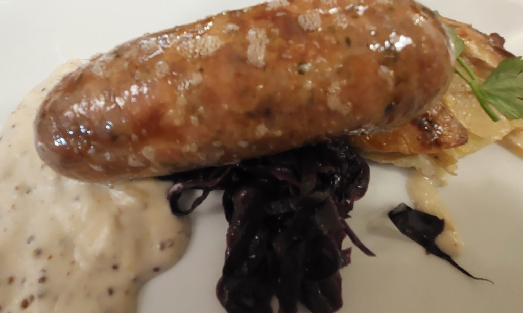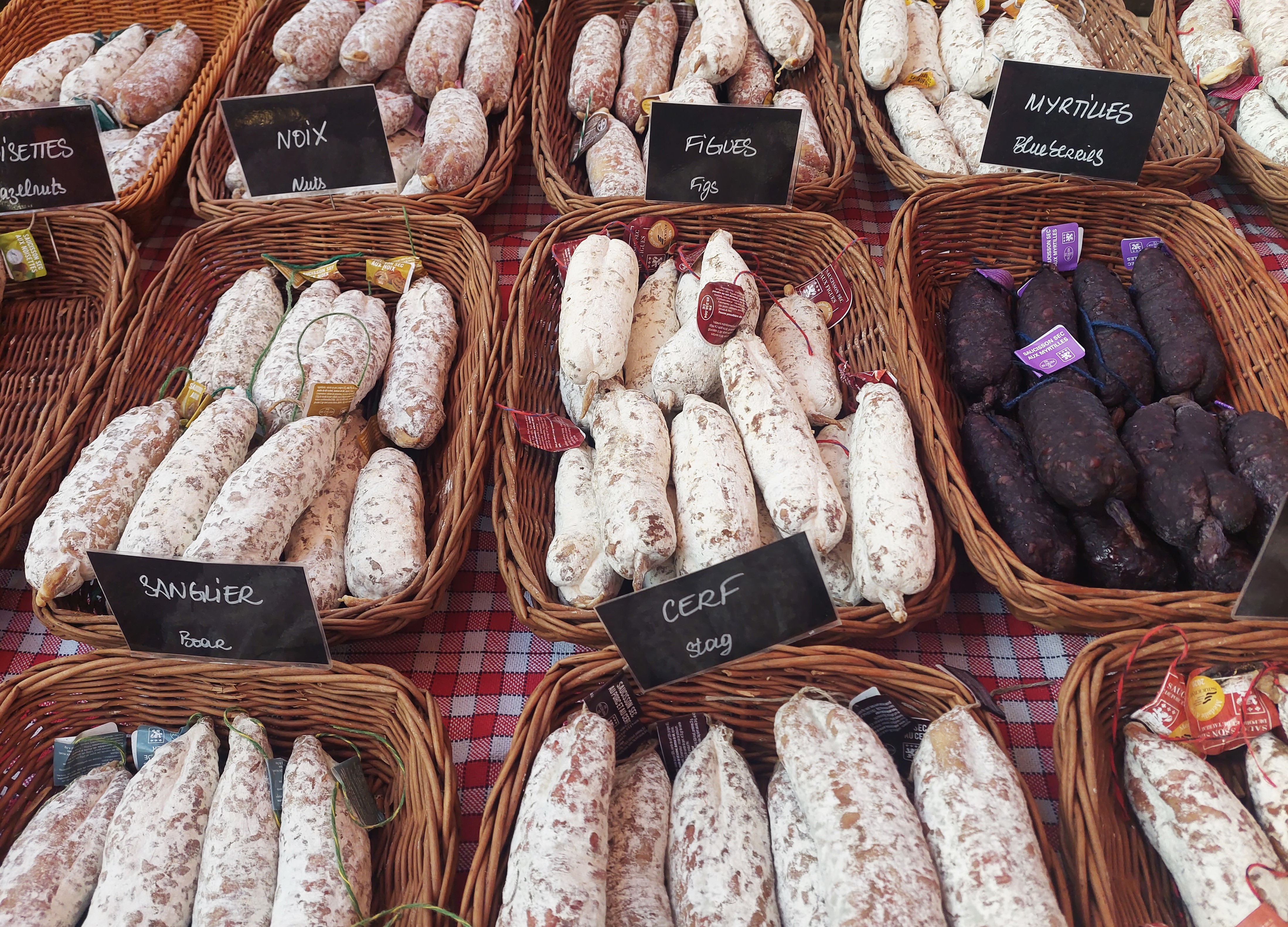 Quennelle– A creamed mixture of fish or meat, Andouillette – A sausage made from pork intestine, Saucisson à cuire pistaché – seasoned pork and beef sausage with pistachio and Rognons de veau – Veal kidneys in a [creamy] sauce. A traditional Lyon Praline Cake [made with almonds and is often pink in colour] is a satisfying conclusion to a meal. There are also wonderful local cheeses which I can never refuse.