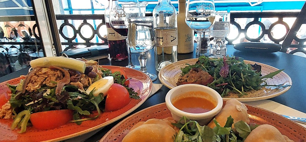 We had our first meal in Nice here and our first Socca, which is a chickpea based pancake. The restaurant is nestled in a small side street just north of the Old Port. We sat outside but there are tables inside too. The food, wine and company was great. A wonderful introduction to Cuisine Niçoise.