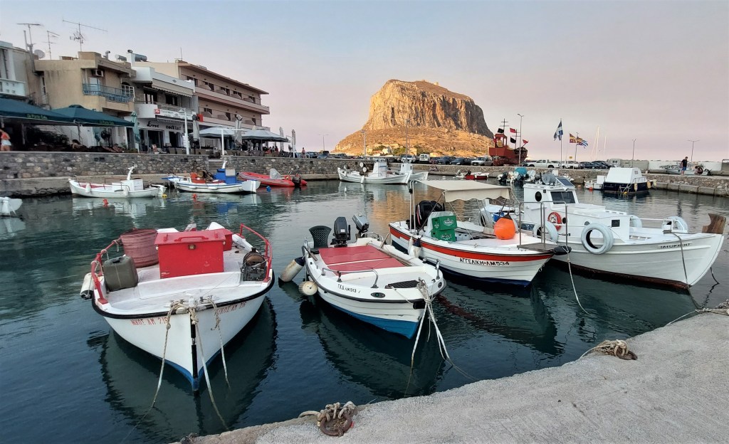 Most guidebooks and people say that you just have to stay overnight in Monemvasia. If you choose to do so I am sure you will have a wonderful time but it will come at a premium. I have stayed in Gefyra on the mainland twice now and have been very comfortable in mind, body, spirit [and pocket] on both occasions. OK, Gefyra is not as magical a place as Monemvasia but it has great views of the rock. It’s just a typical seaside town that you can find anywhere in Greece, with a great view. The perfect place to wind down [and wine] down after a hard day exploring.