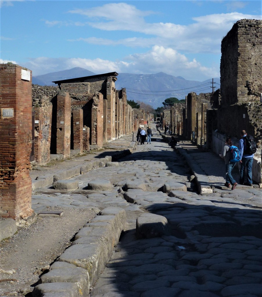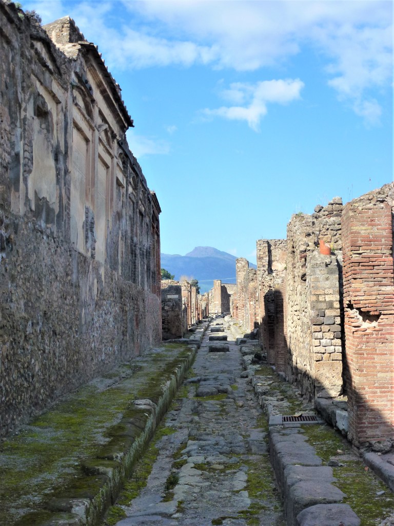 It’s a wonderful feeling just walking along the streets and pedestrian crossings that the inhabitants used nearly 2000 years ago. You can still see the furrows made by carriages and our guide told us the small pieces of marble embedded in the road were the original ‘cats eyes’ to help show the way in the dark.
