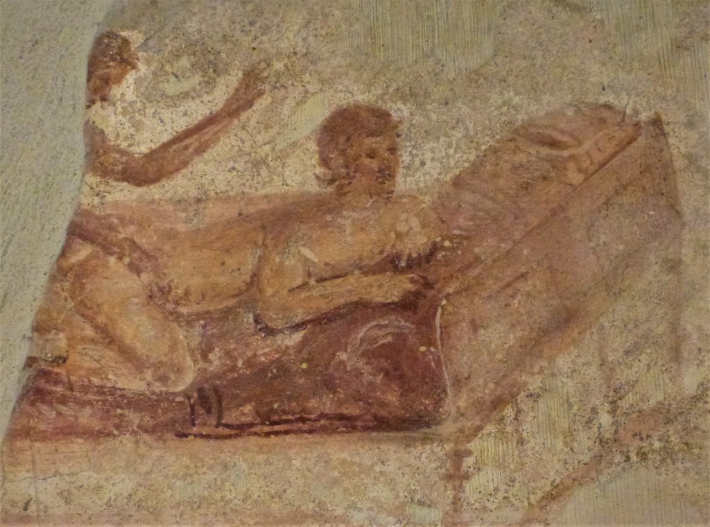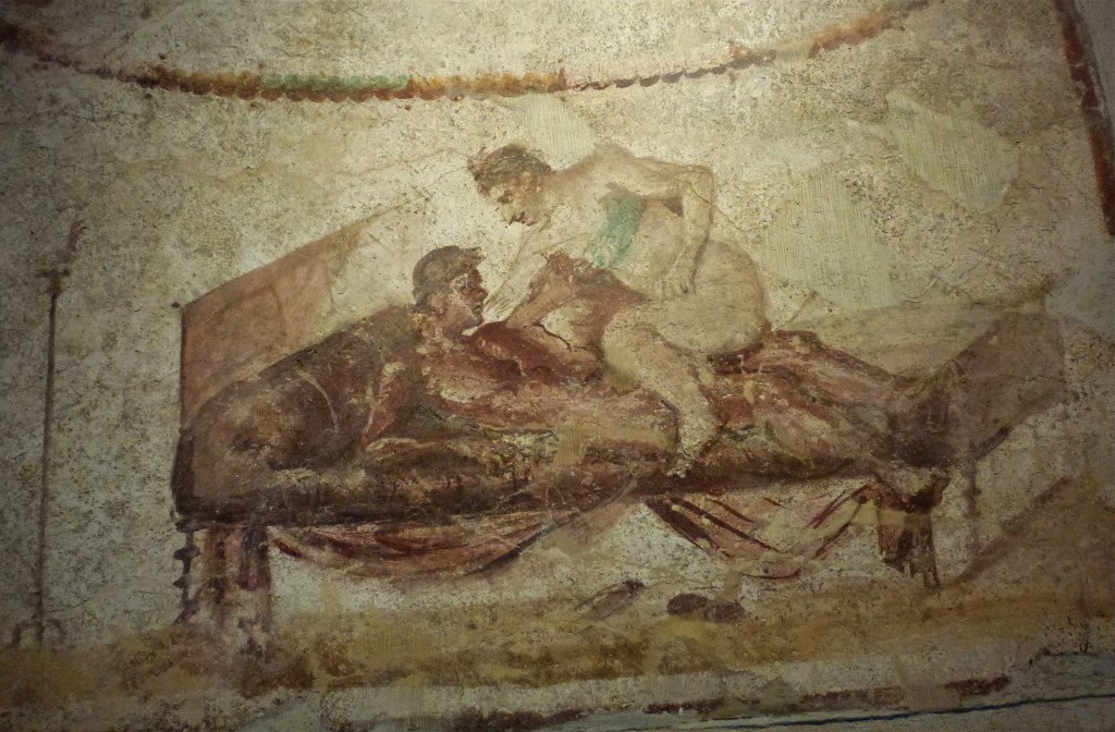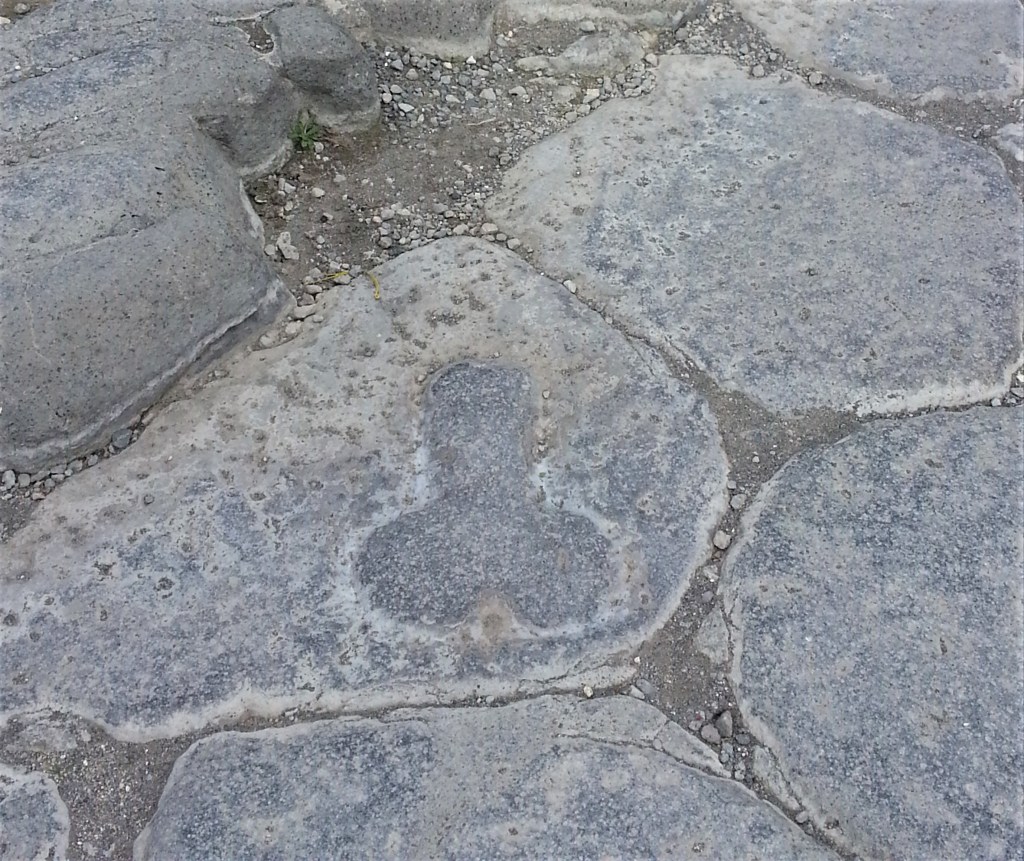 Pompeii was a prosperous trading town and therefore needed certain services for the traders and travellers. The red light district is clearly sign posted on the pavement. Just follow the phallus’ !