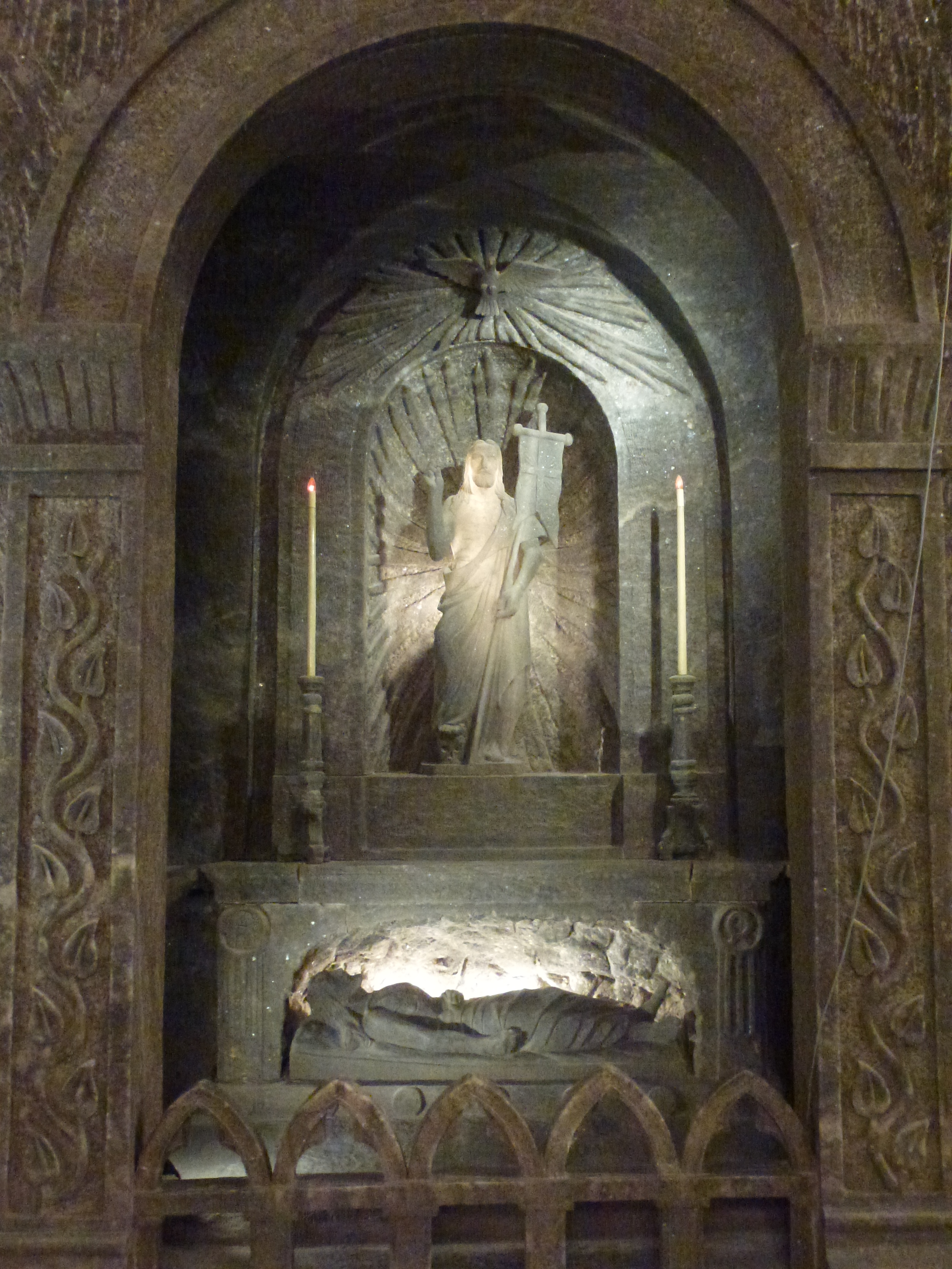 There are various options available for the visitor. We chose the Tourist Route visiting 23 chambers connected by 2.5km of corridors over 3 levels to a depth of 135 metres underground. You start by walking down a wooden staircase that seemed to go on forever.