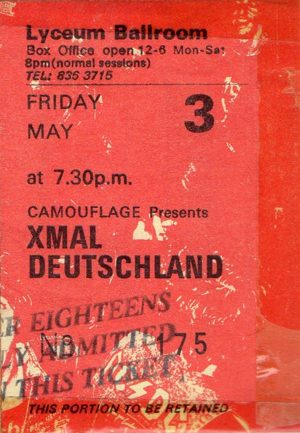 | 24/10/83 | Xmal Deutschland The Wolfgang Press | London, The Venue | |