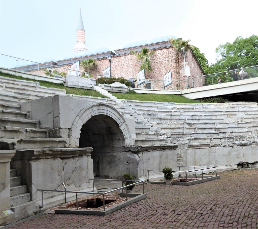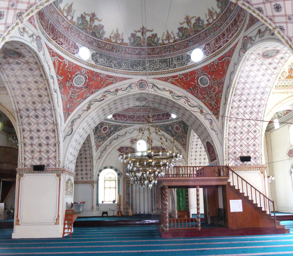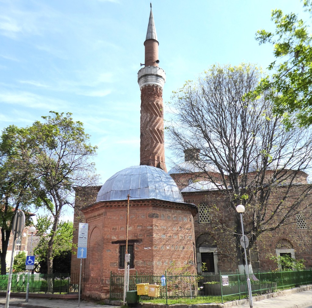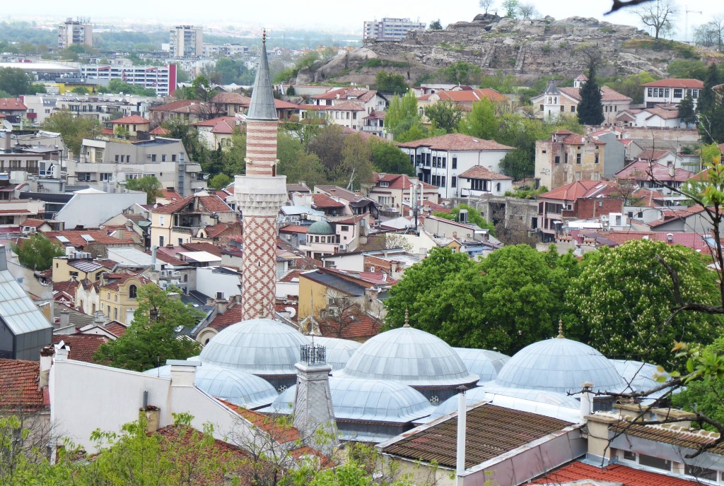 Dzhumaya Mosque is next to the Roman Stadium slap bang in the city centre. It is one of the oldest and largest mosques in the Balkans and dates from the mid 14th Century. It has 9 lead covered domes which is unusual as most mosques have one central dome [see photo below taken from Sahat Tepe]. The inside of the Mosque is beautiful. Don’t forget to take off your shoes.