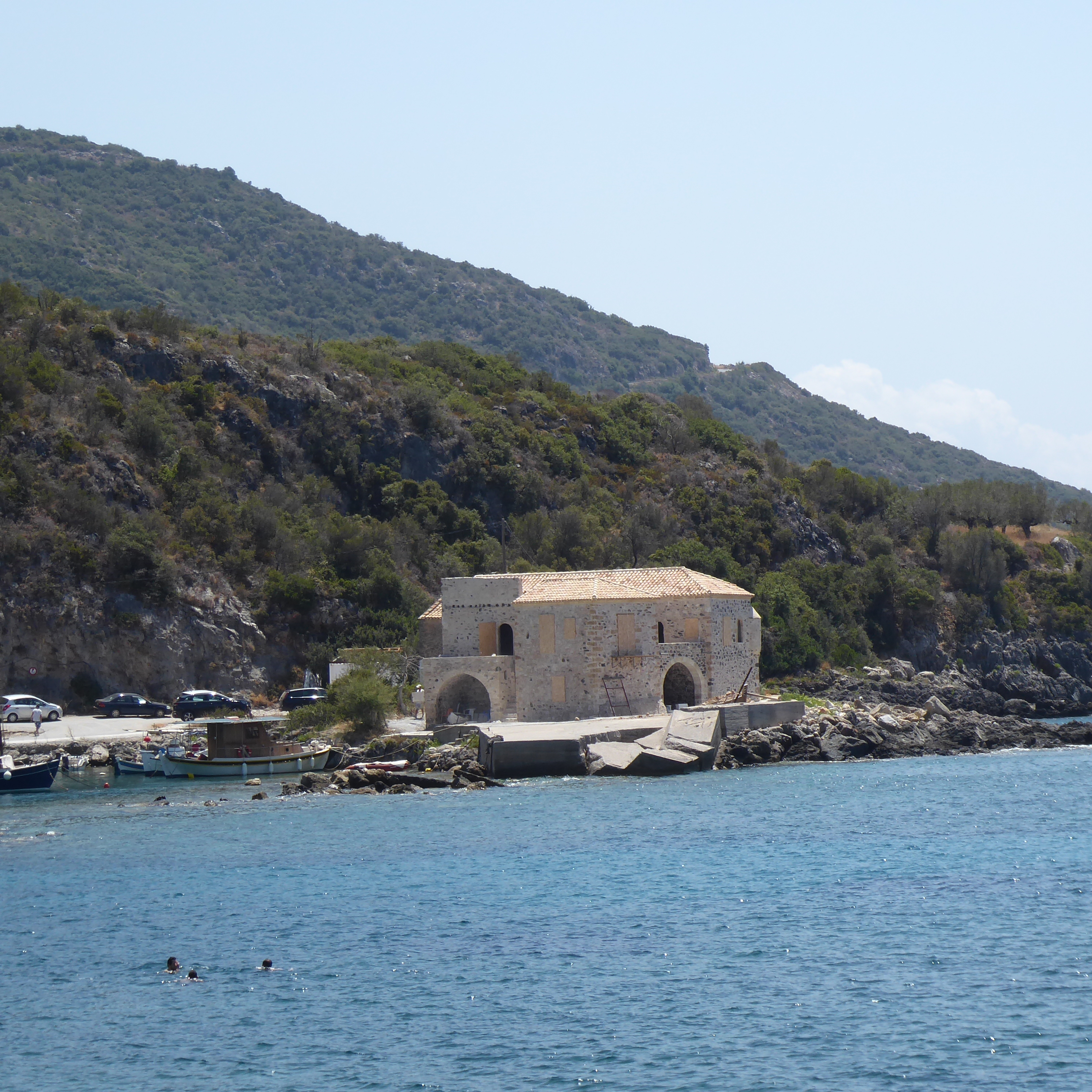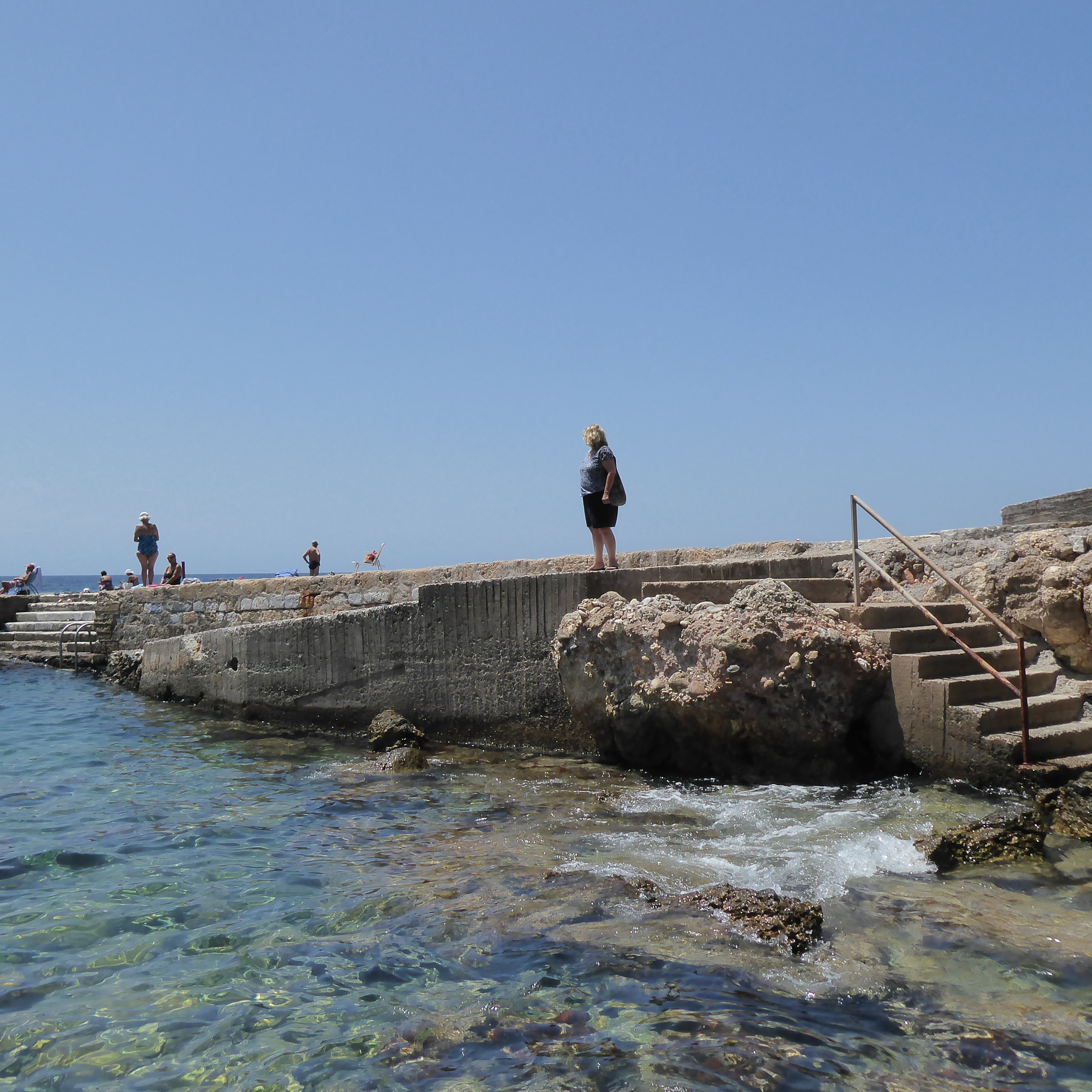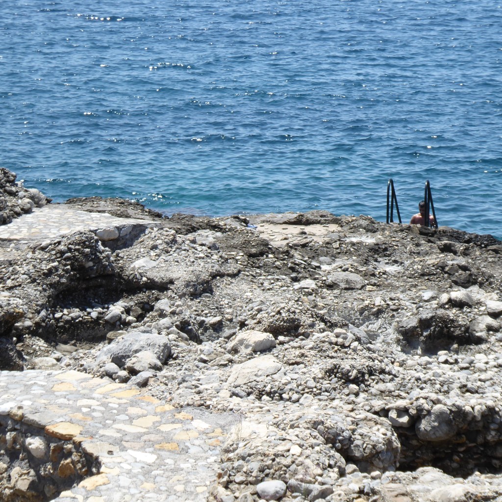 There are a few places in Kardamyli where you can enter the sea from platforms or steps. One such place is near the church and another is by the deserted Soap Factory.