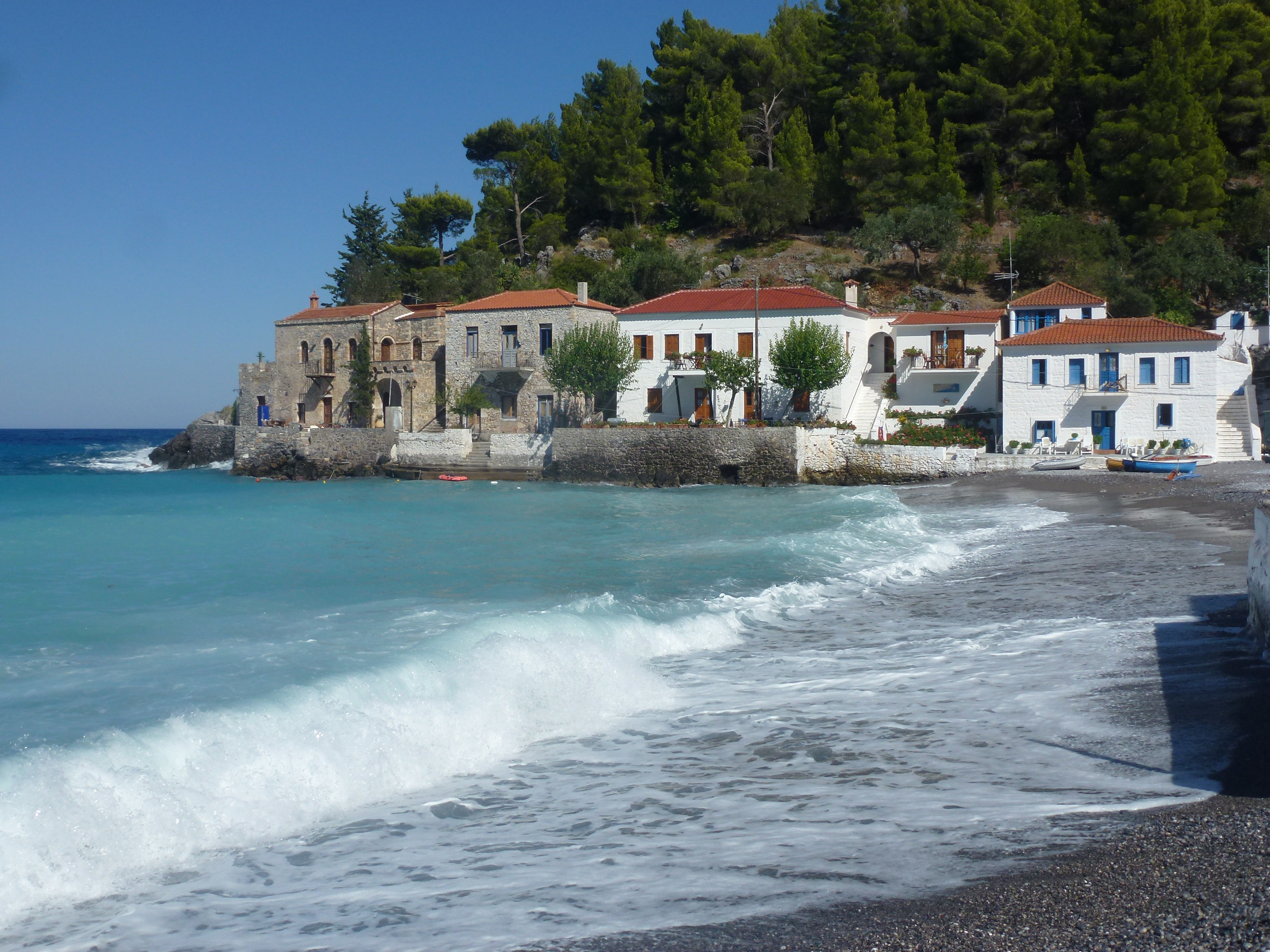 Kyparissi is an attractive village on a bay, squished between an impressive mountain and the Myrtoon Sea on the East Coast of Laconia. It’s near nowhere in particular and has just one long, slow and precipitous road in and out but it is worth the effort as the views are stunning. There are a couple of tavernas and places to stay. Kyparissi is a place where you should just do nothing at all except drink and eat and absorb the scenery around you. Oh OK – you can swim and walk if you want.
