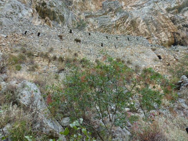 The abandoned Old Monastery which was founded in the 1st Century, is separate from the new one and is a 20 minute walk down a crumbling and, at some times, precipitous path. The Monastery itself is almost completely hidden from prying [enemy] eyes and you do not know you are there until you are upon it. Amazingly it is built on a narrow ledge and blends perfectly into the gorge. The views are superb and if you have binoculars or a good pair of eyes you may be able to spy the Prodromou Monastery on the other side of the gorge. There is a path through the gorge joining the two monasteries, I presume this is where Mr Humphreys got lost. We have not tried this out yet.