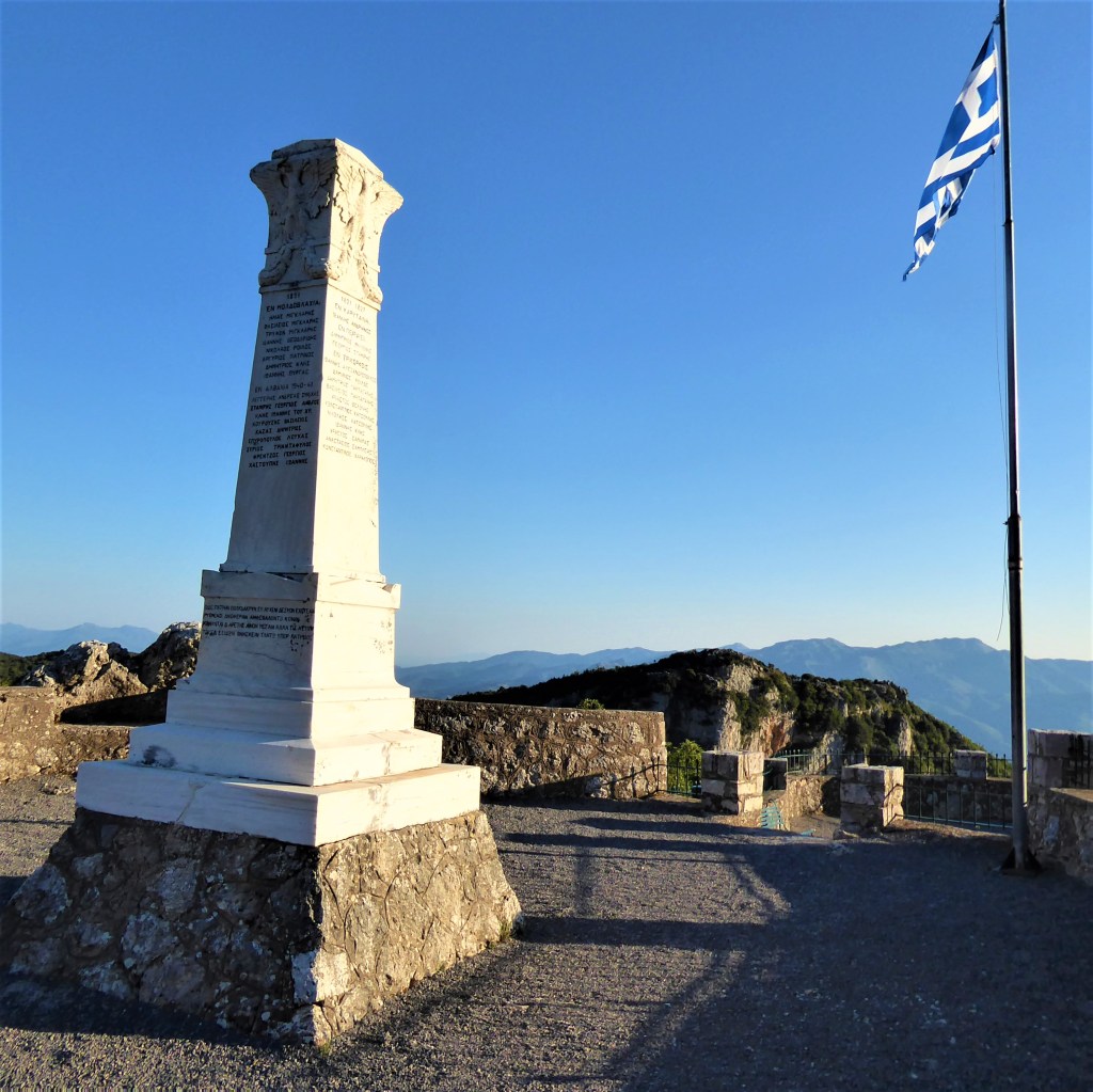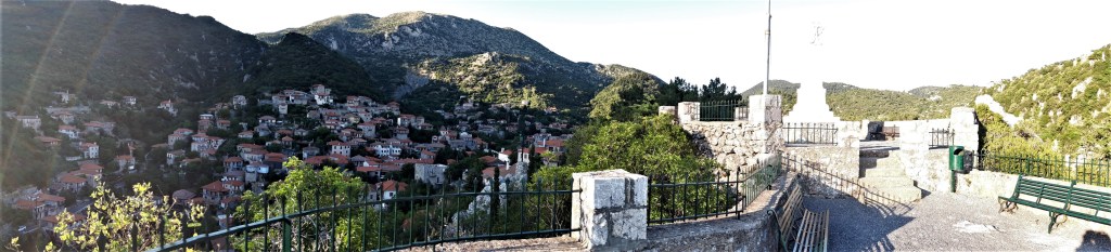 The short walk from the back of the square takes you past a couple of ancient churches including the Church of the Panayia Baphero which dates from the 12th century. The path ends at the ‘Heroon’ [tomb] Monument to Fallen Heroes which offers incredible views over the gorge and village.