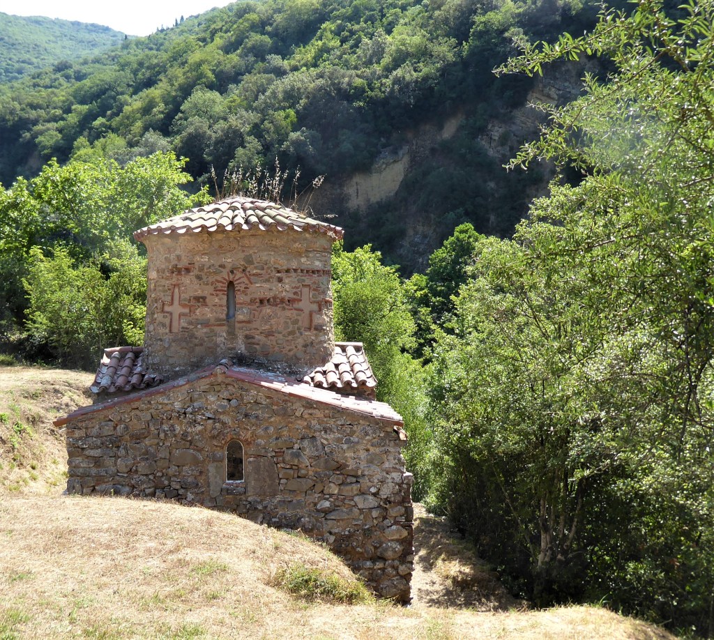 Not far from Dimitsana are the two Philosophou Monasteries. The ‘new’ one is 17th Century and has a delightful little church as well as spectacular views across the gorge. You may be greeted by an enthusiastic and friendly priest who will most likely sit you down, offer you water and tell you stories about the monastery in broken English. He had a strong accent and a speech impediment that made him sound like he was speaking through a kazoo which made him very difficult to understand. He was there to greet us in 2013 and again when we revisited in 2017.