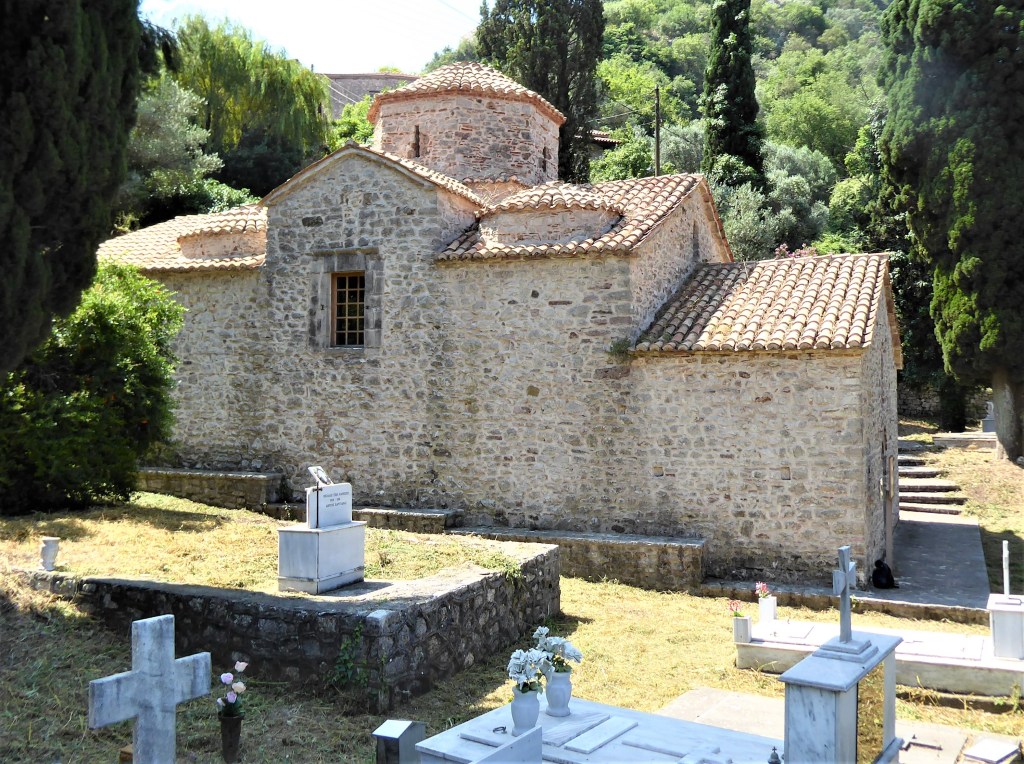 The main road that bypasses the village crosses the river Alfeios on a modern bridge that hides a Byzantine Bridge underneath so it’s a good idea to stop and take a peek. [Do not attempt to stand on the wooden beams on this bridge, it is falling apart].