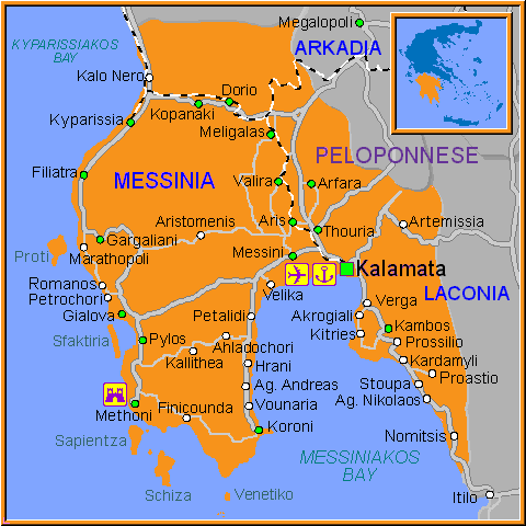 The international airport is only ten minutes drive from the city and is most likely your entry point into The Peloponnese. Package holiday companies tend to focus on the small resort of Finikounda on the West Coast near Methoni.