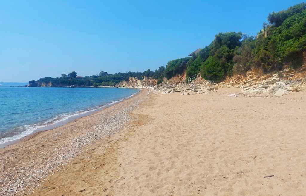 North of Agios Andreas is Chelonaria [Turtle beach] which is a bit of a hidden gem, it’s just south of Kalamaki at the end of a narrow road. There are sunbeds attached to the basic beach cafe which only served toasties and drinks on our visit.