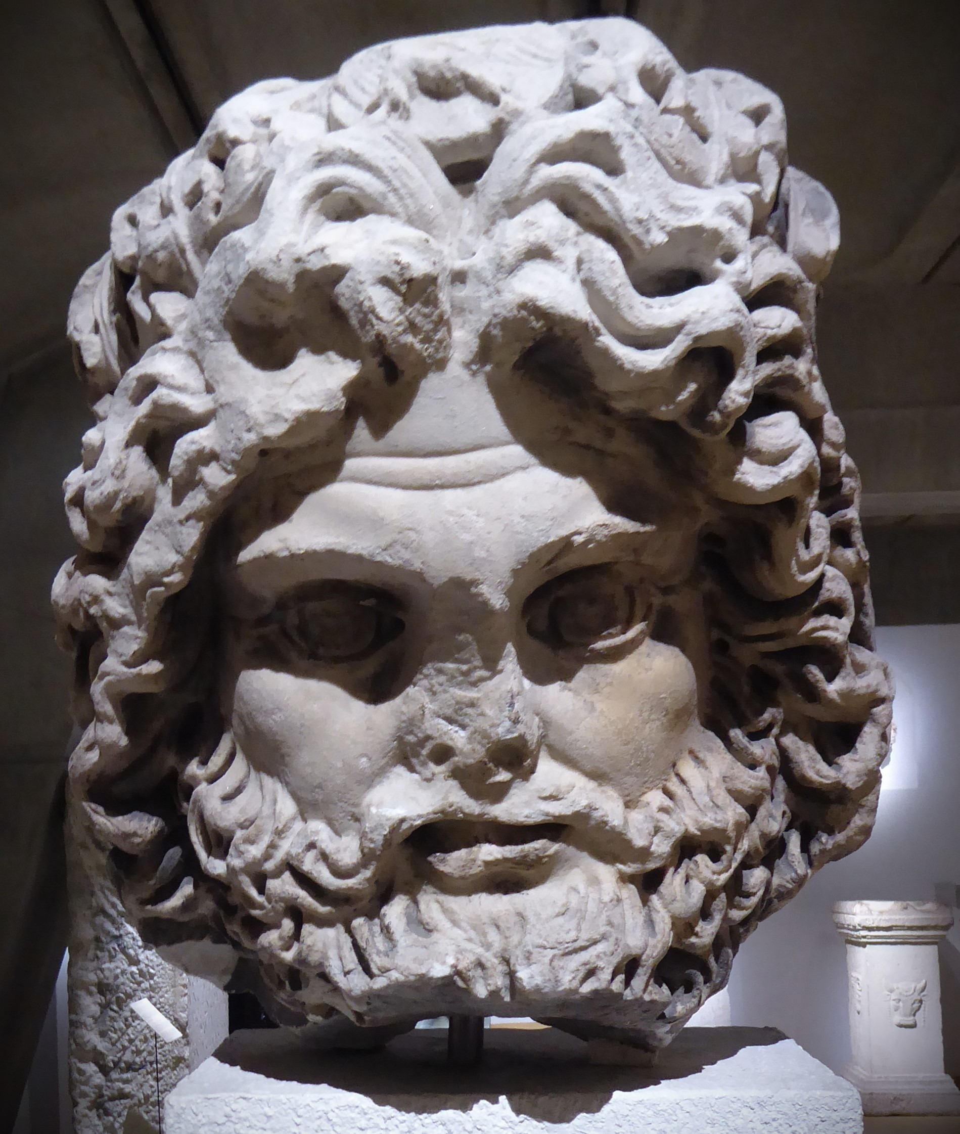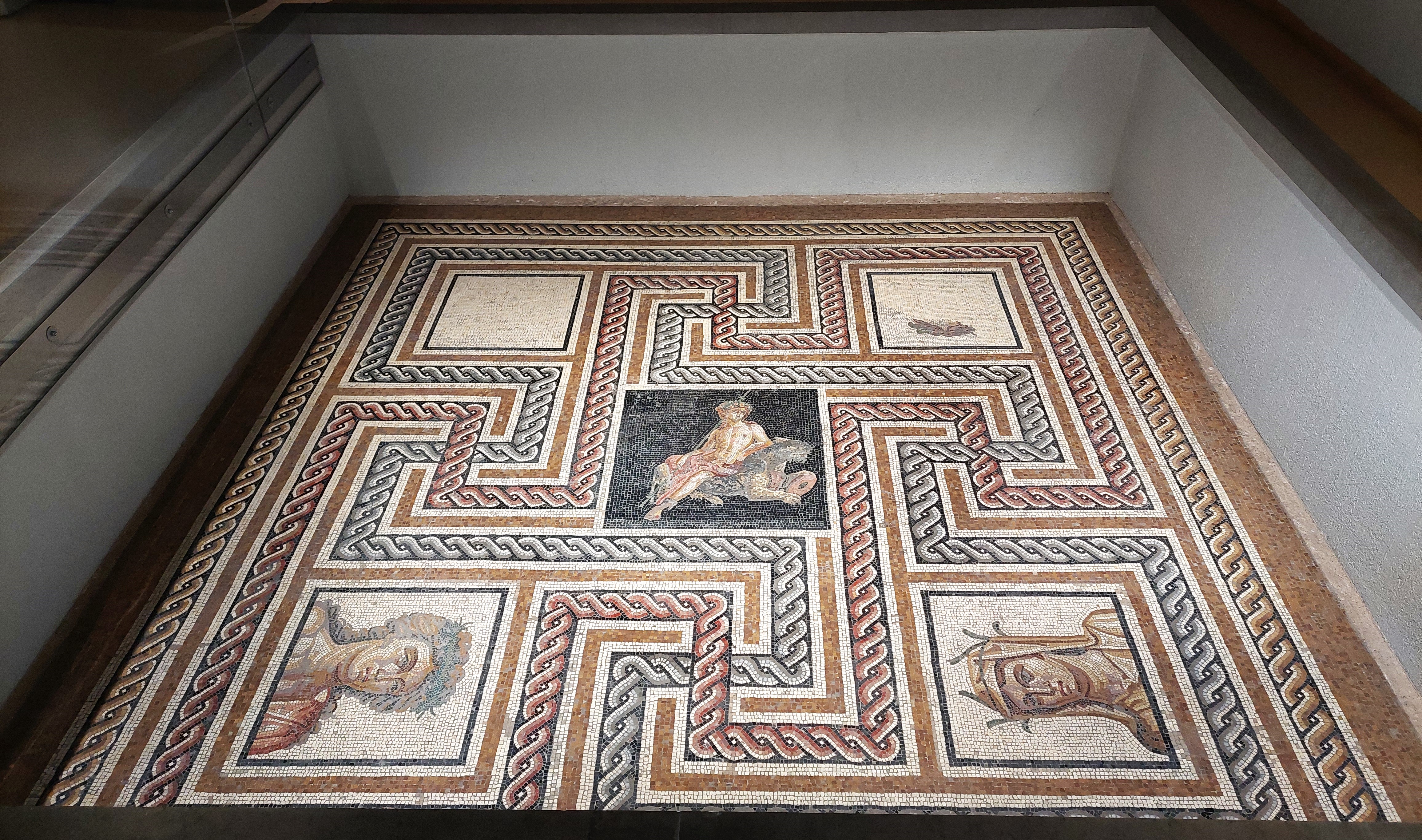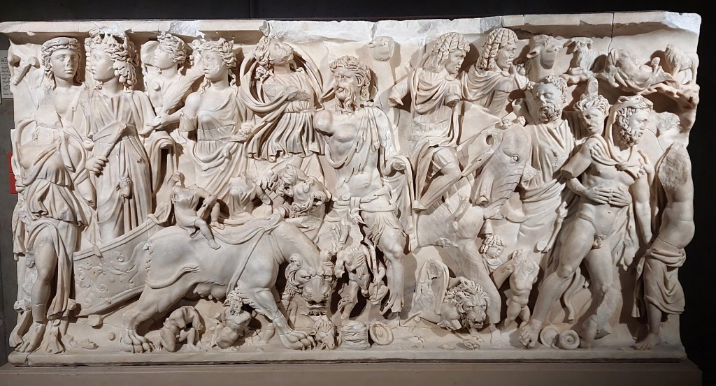 Above left- Head of Jupiter, 2nd century. Above right – Mosaic depicting Bacchus, 2nd-3rd century.