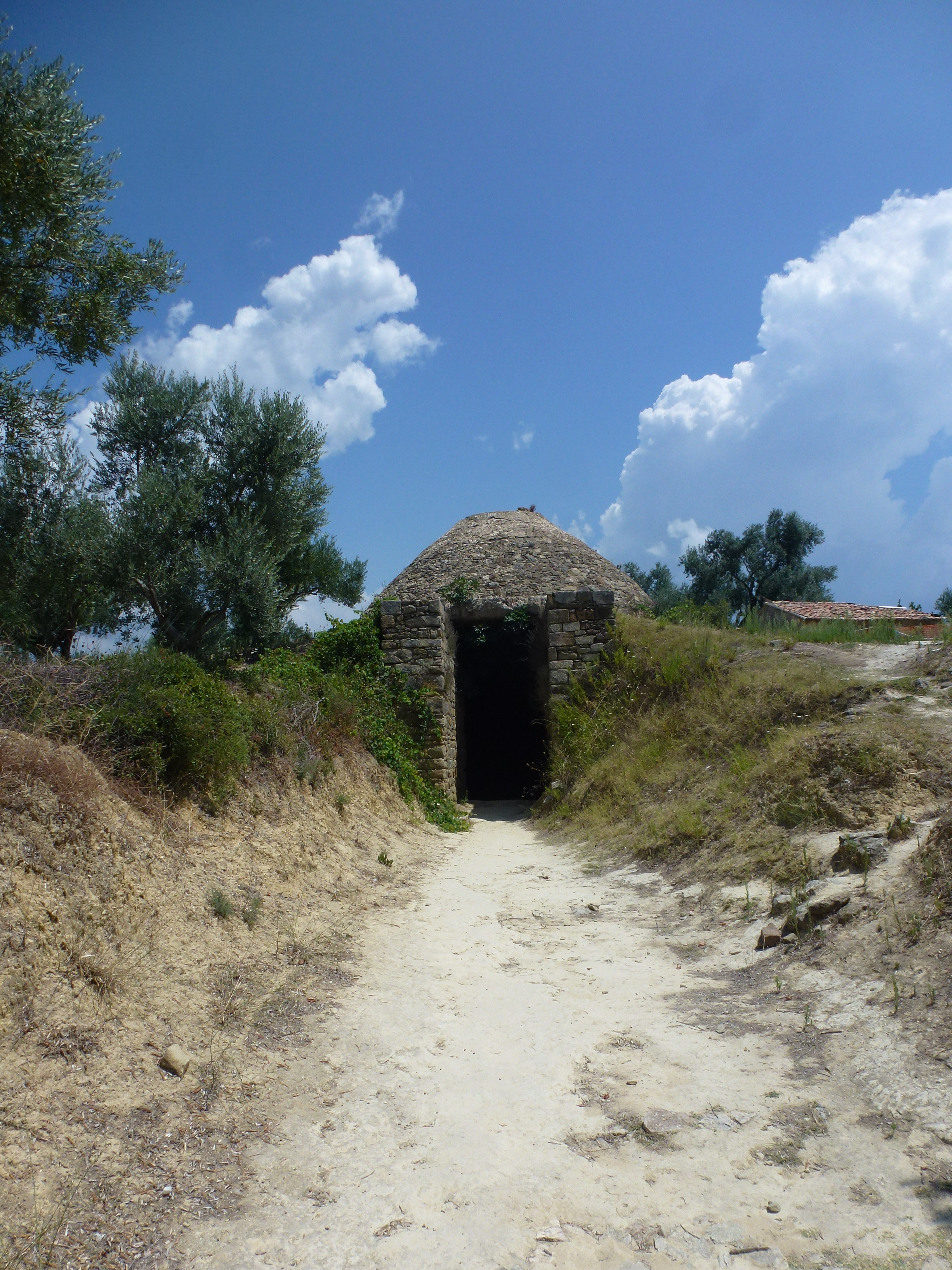 Newly restored with most of the ruins under a huge steel structure. You do need a bit of an imagination here as the remains lack height and at first glance do not impress. The information boards are helpful in bringing the site to life. When we visited we took a picnic with us – spread out a blanket under an olive tree by the Tholos tomb and had lunch. There was no cafe there when we visited in 2018.