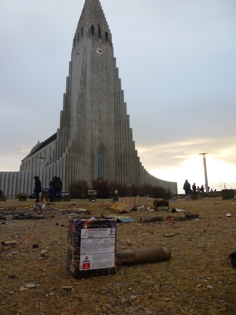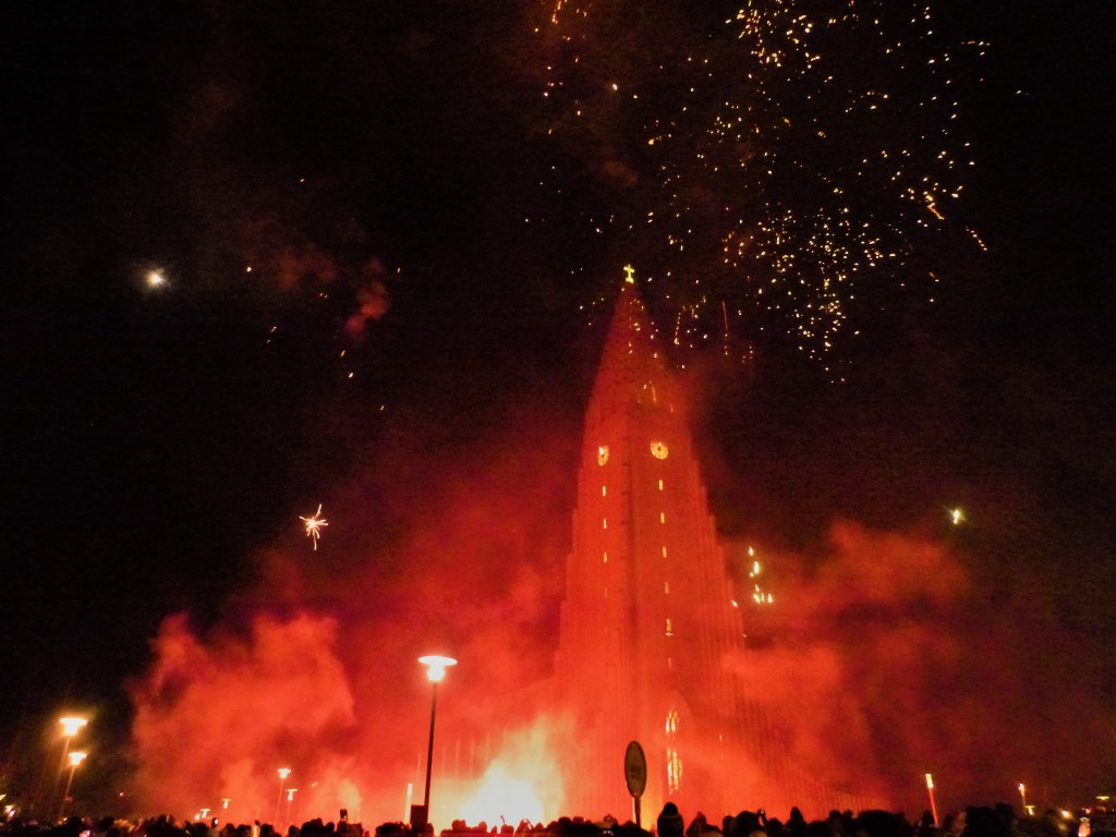 The display at Hallgrimskirkja attracts a large crowd and that is where we went, bubbly in hand, after a lovely dinner at Forretbarrin. When I say display – it does not appear to be an organised event, with locals letting off their own fireworks when they wanted! Luckily, the sky was clear and the rain had stopped but it was bloody cold. Outside of the city there are many local community bonfires and displays. You could also choose to watch the fireworks from different parts of Reykjavik, such as the harbour or Perlan.