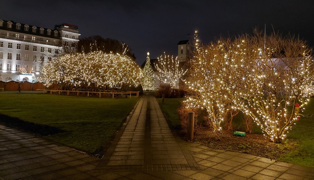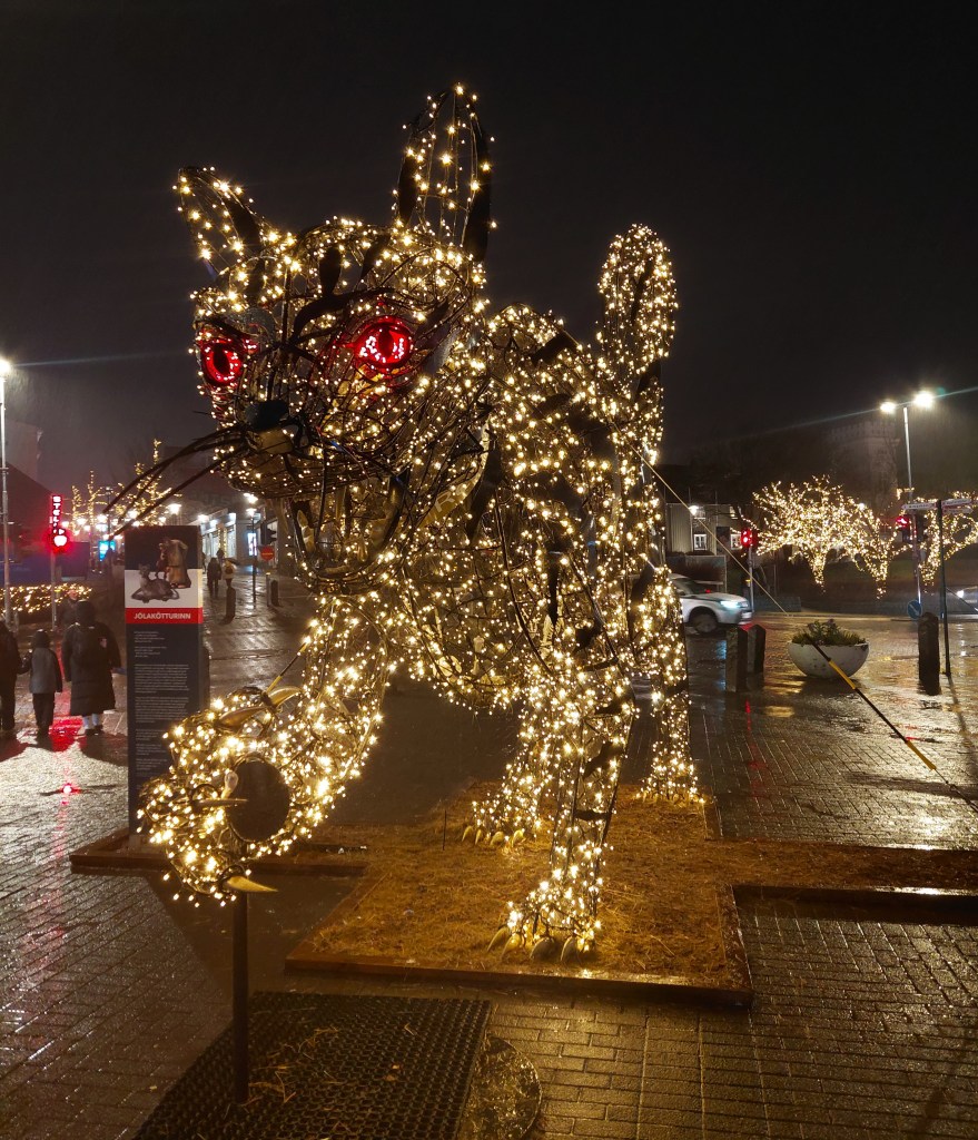Reykjavik is still very Christmassy at the end of the year with colourful lights along the streets and houses. There is also the Illuminated Christmas cat and projections of elves and other Icelandic Christmassy characters on some buildings.