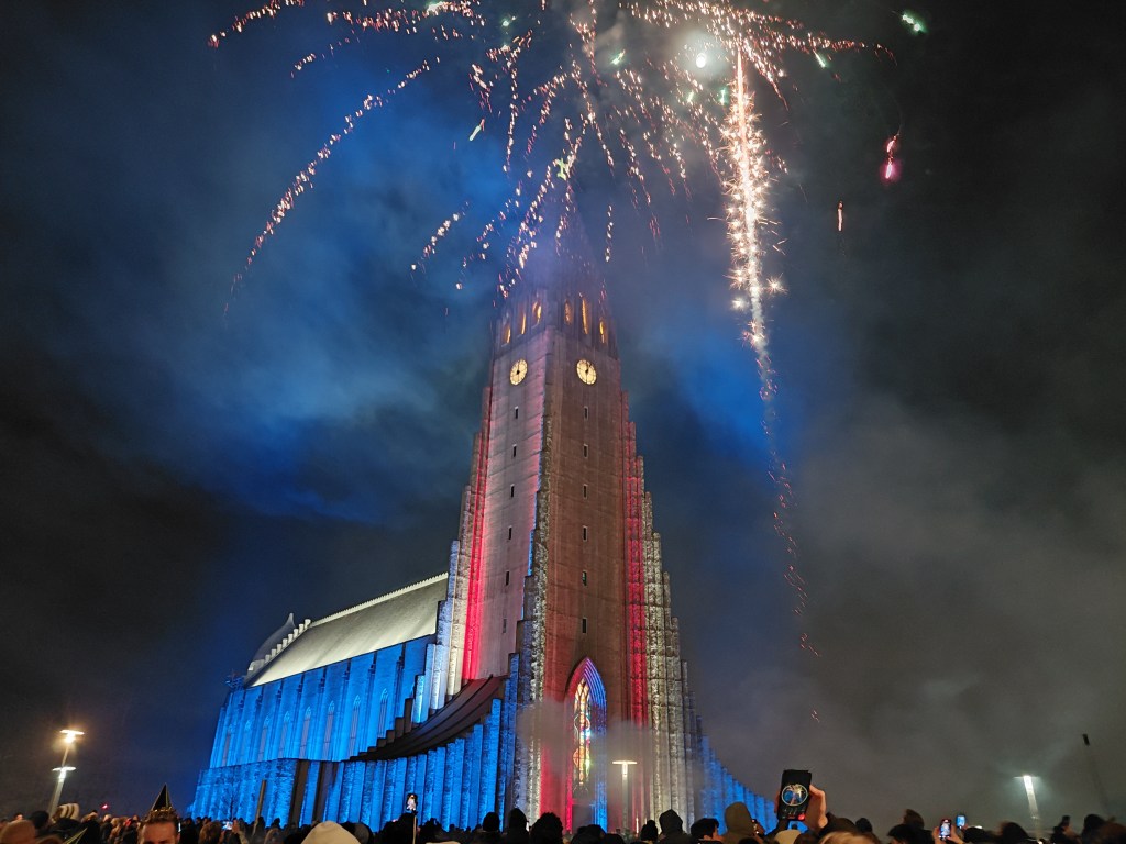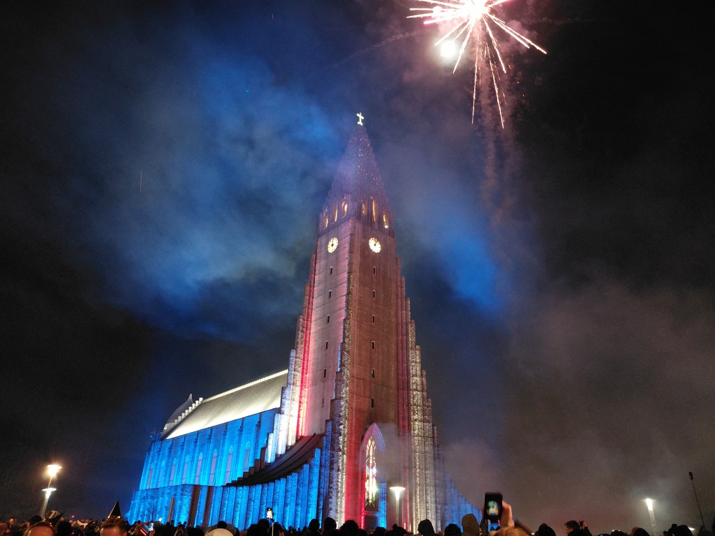 In 2018 Leashia and I decided to go to Reykjavik for a few nights taking in the new year. We had a wonderful meal at Forrettbarinn and then while most of the population were watching Áramótaskaupið on the telly we retreived our bottle of bubbly from our accomodation [which we had kept cold on the window sill] and headed to Hallgrimskirkja for the fireworks.
