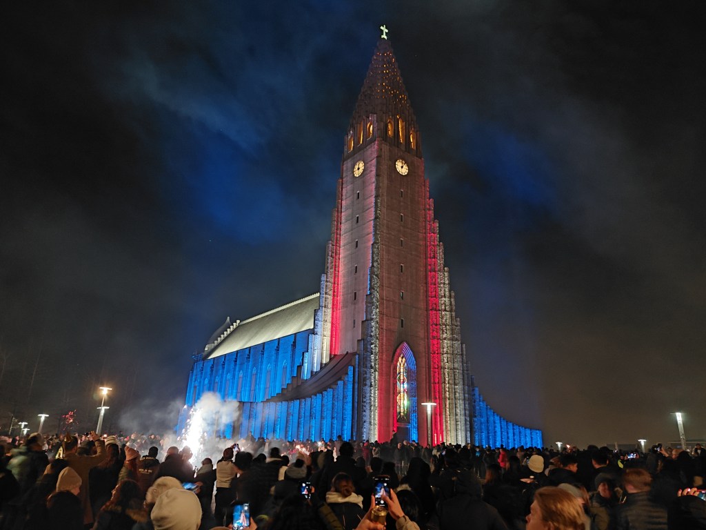 I was pretty pleased with the steak dinner that I rustled up at our accomodation and we watched Áramótaskaupið on the telly, [and understood some of it] before heading back to the church with our bottle of bubbly for another bonkers display of fireworks. The slideshow below from 2025/26 and the videos should give you a good idea…