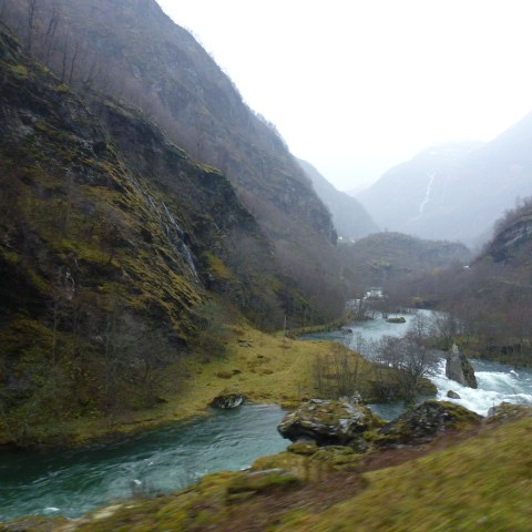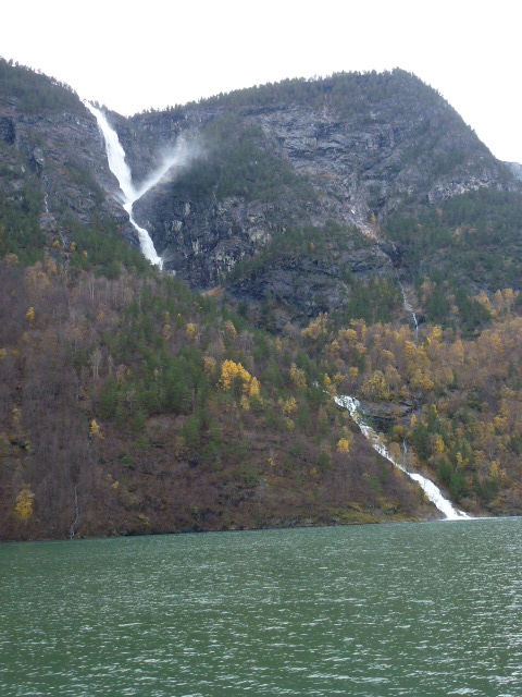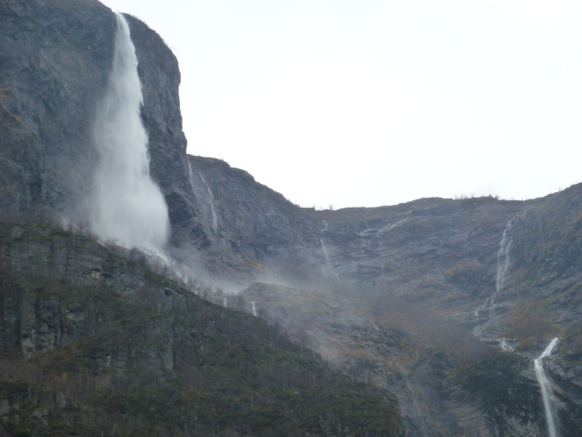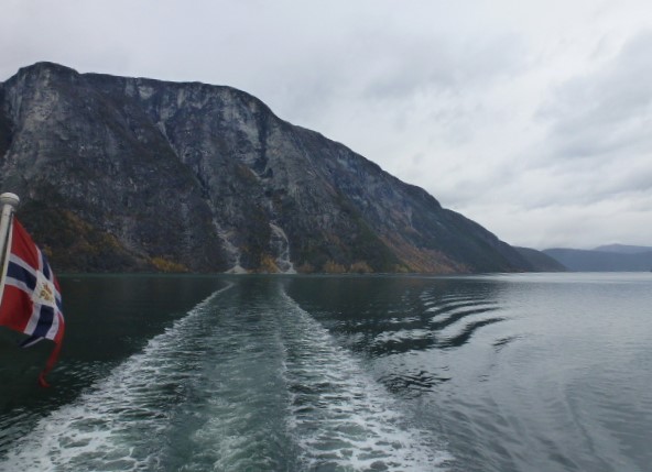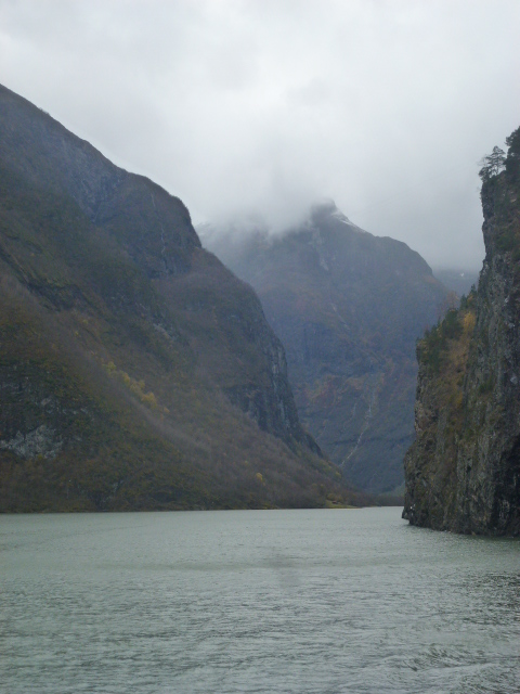 The boat to Flam turned out to be a ferry although it is described as a ‘cruise’ on the Norway in a Nutshell website. We sailed through two beautiful fjords and our spirits were not dampened at all by the poor weather.