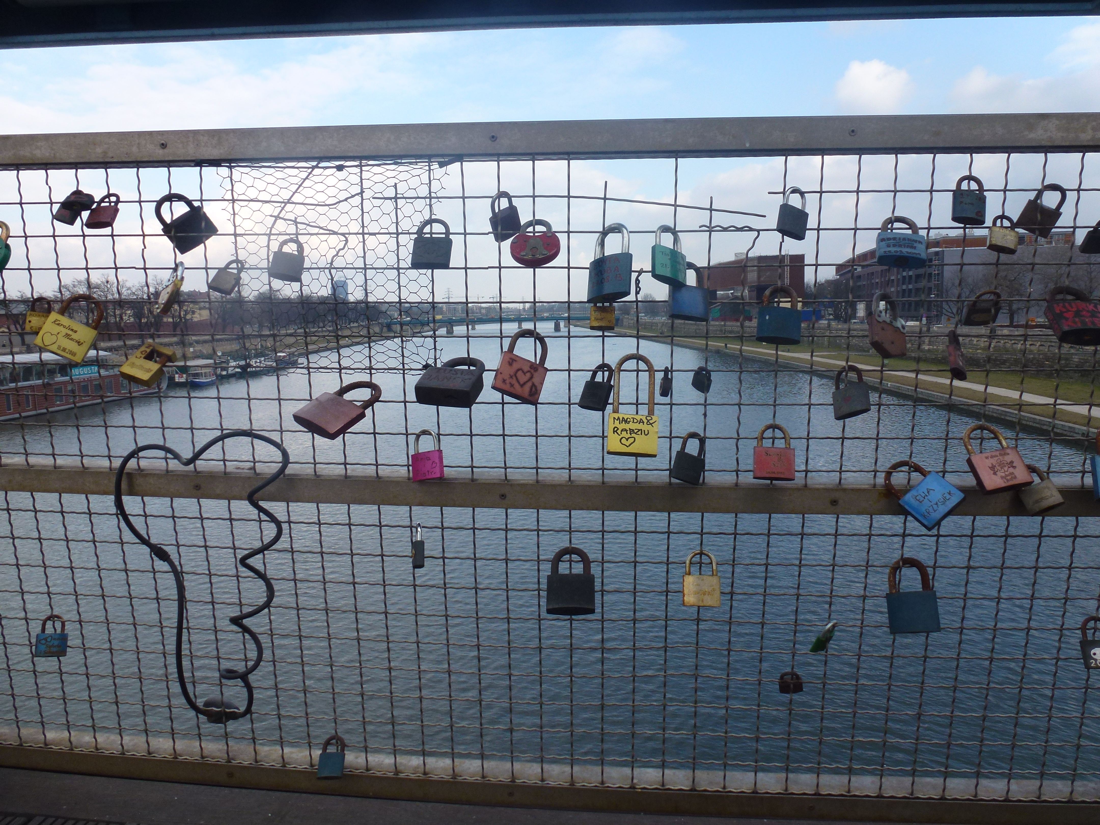 If you are walking from Kazimierz you may well cross the River Wisla on the Bernatek Footbridge which was built in 2010. The railings of the bridge were adorned with padlocks inscribed with the names of loving couples who then throw the keys into the river. [aaah.. soooo cute !]