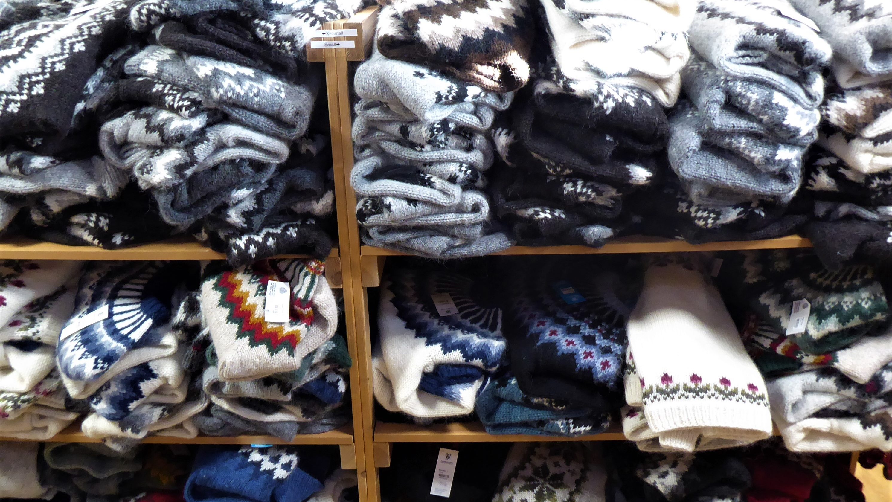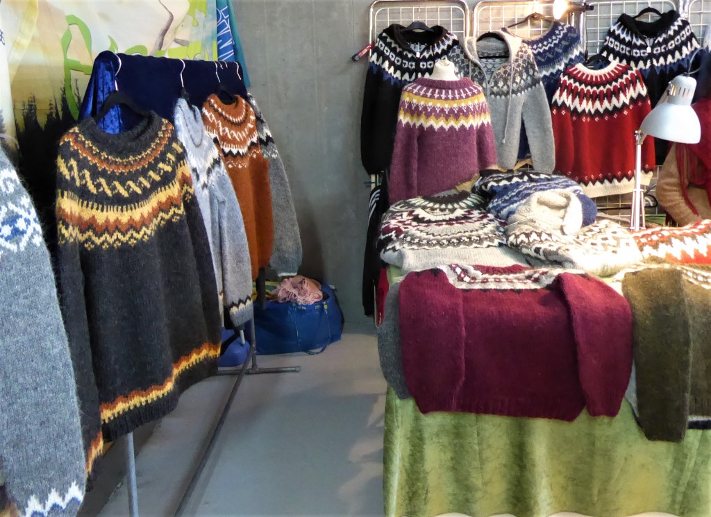 There are loads of of clothing shops in the town centre selling quality clothing at quality prices. The hand made lopapeysa [and the cheaper machine made] wool jumpers are wonderful and I cherish the one I bought a few years ago. There is a huge selection of them just down from Hallgrimskirkja in the Handknitting Asssociation of Iceland Woolshop.
