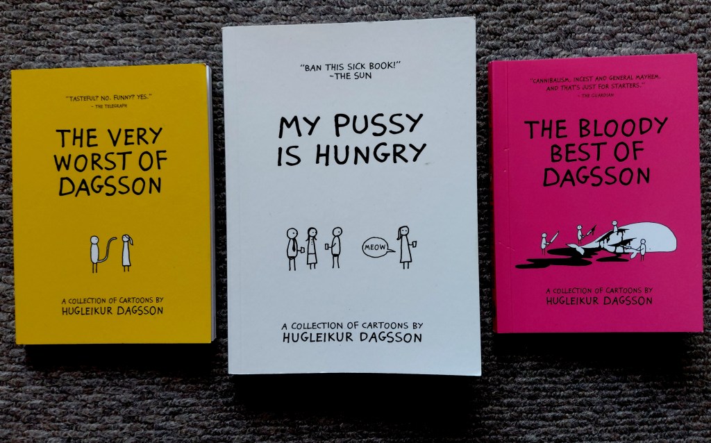 If you have a completely warped sense of humour you may consider purchasing a comic book or two by Hugleikur Dagsson. He covers topics most comedians would not touch with a barge pole! You will find his books in tourist shops, Harpa’s shop and bookshops. He also has a range of clothing which are really amusing or just plain wrong, depending on your stance !