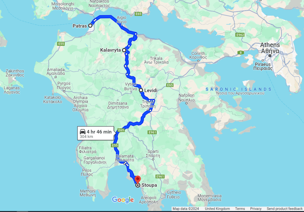 Stage 2: From Patras to Stoupa – The Peloponnese bit