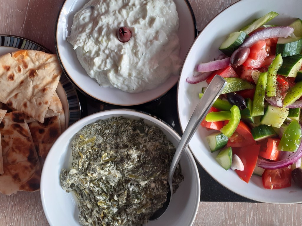 My Spinach and feta salad at the bottom, Tzatziki at the top.