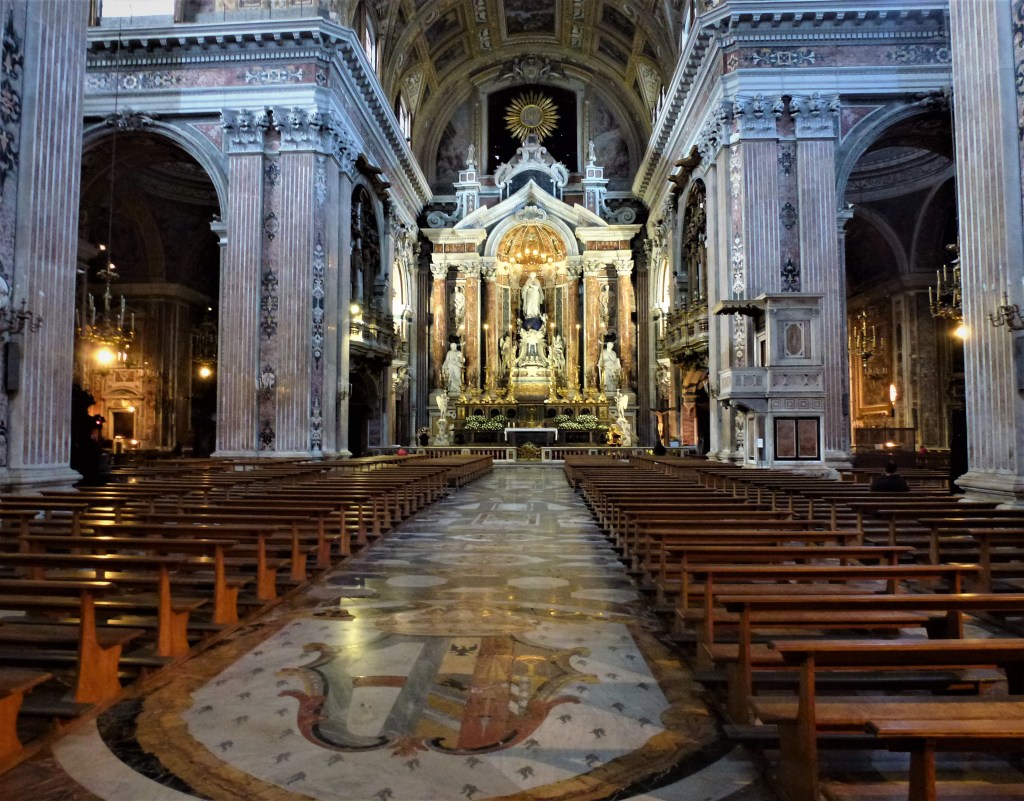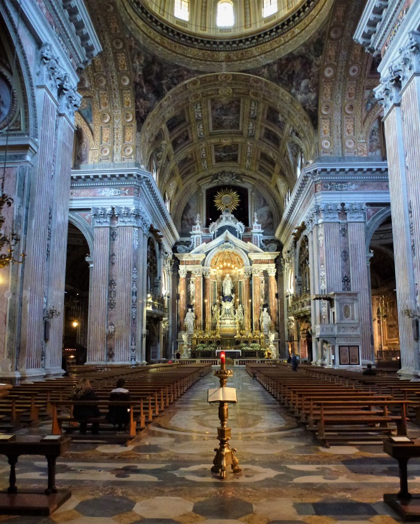 The church dates from the 16th century when it was rebuilt from a 15th century palace. The baroque interior is exquisite and is adorned with large frescos, sculptures, marble and gold.