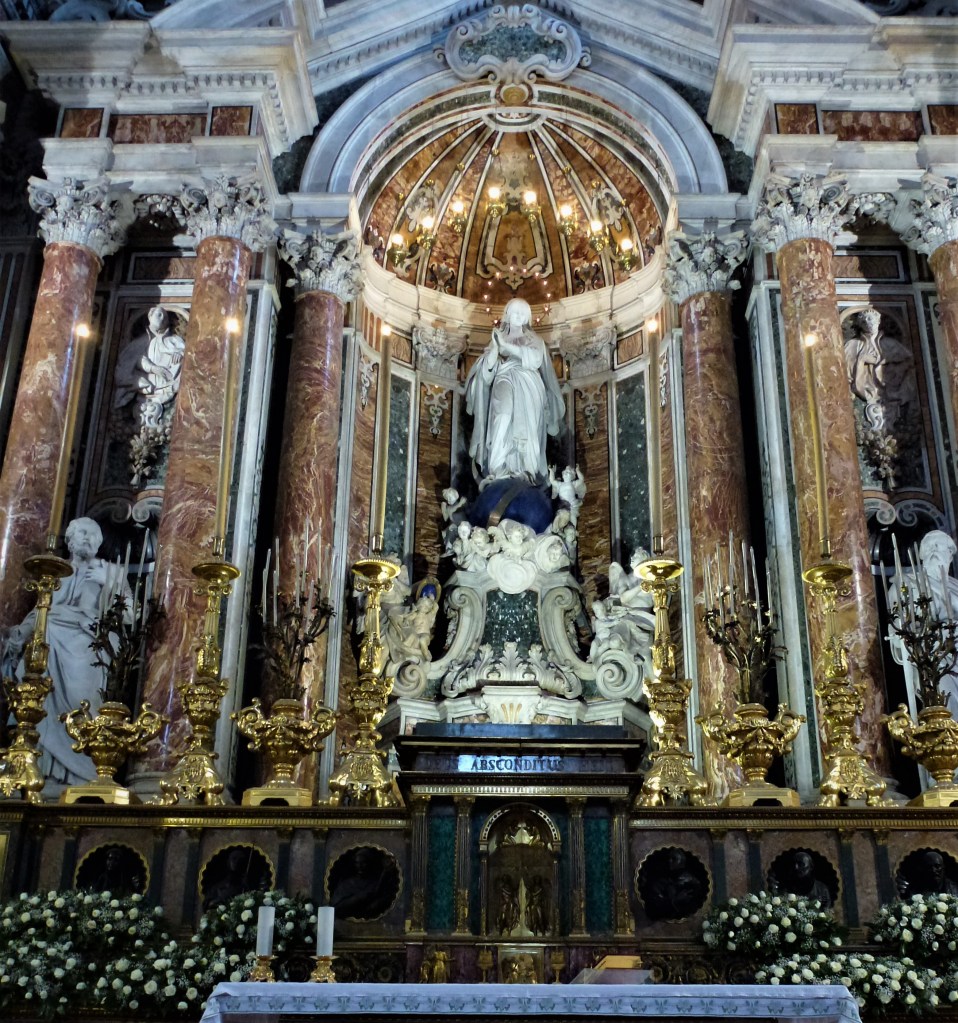 This beautiful church was commissioned in the 13th century by Charles I of Anjou. the amazing ceiling fresco is from the early 18th century. The interior was redecorated in the Gothic style in the mid 19th century.