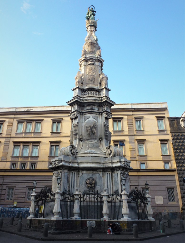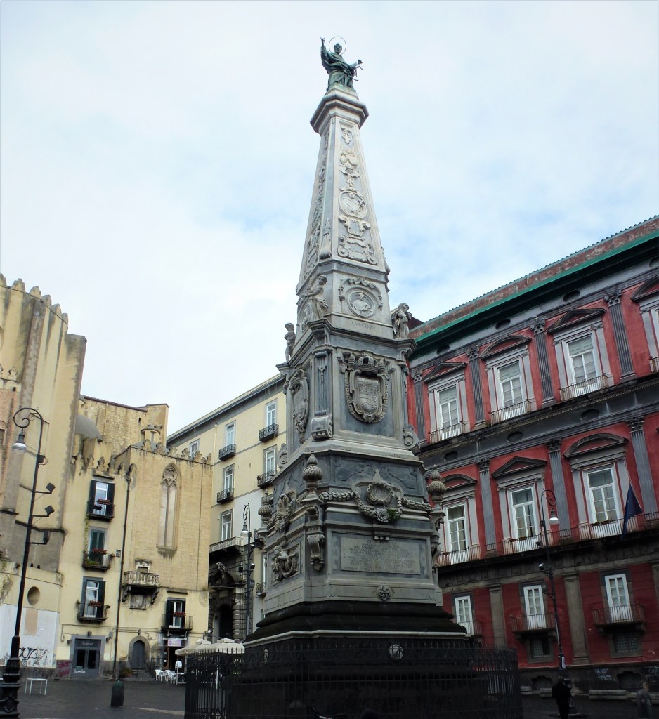 This square which is flanked by palaces and the church San Domenico Maggiore at one end is dominated by the spire built to celebrate the end of the plague in 1656.