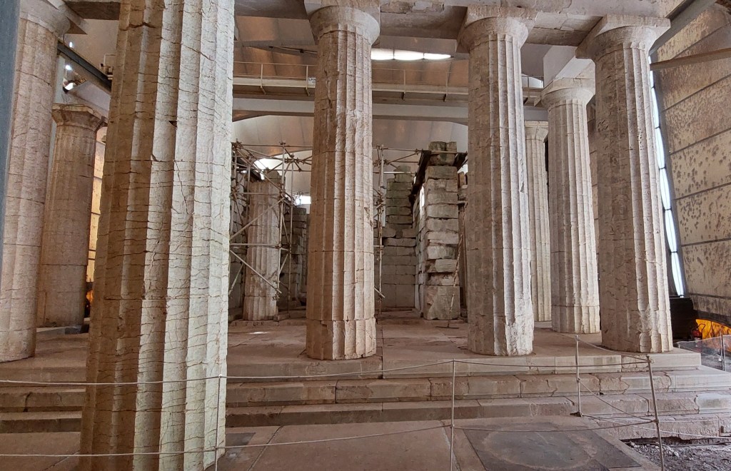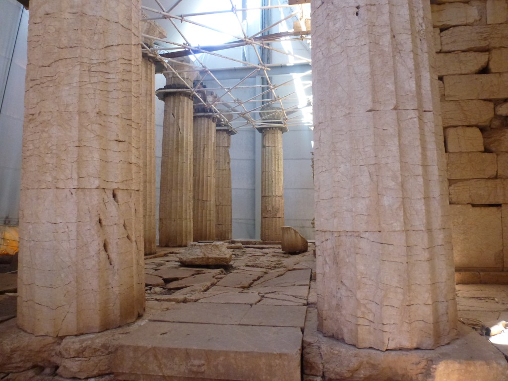 The size of some of the Doric pillars are absolutely enormous. The main body of the temple is currently covered by a huge protective canopy to protect it from the elements, hopefully only a temporary situation. Sadly many artefacts from the site were removed by the British and now reside at the British Museum in London.