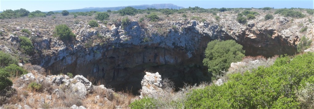 Heading south towards Gerolimenas you will probably whizz past Erimos. If you have the time it’s worth searching out the amazing sinkhole on the edge of the village. It’s not far from the small pretty Church of Agia Barbara. On my visit the sign pointing to the sinkhole had been destroyed. The road there is dreadful, so park by the [not] sign and walk the 20 minutes or so to the sinkhole.