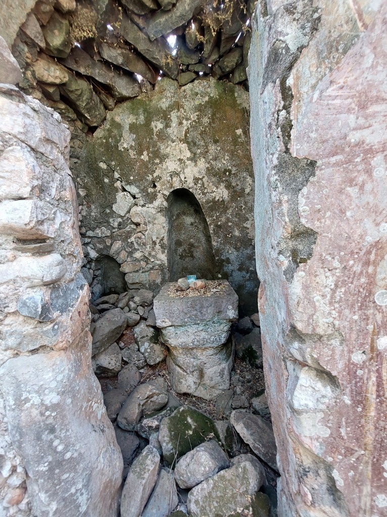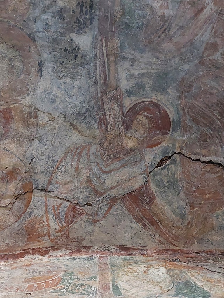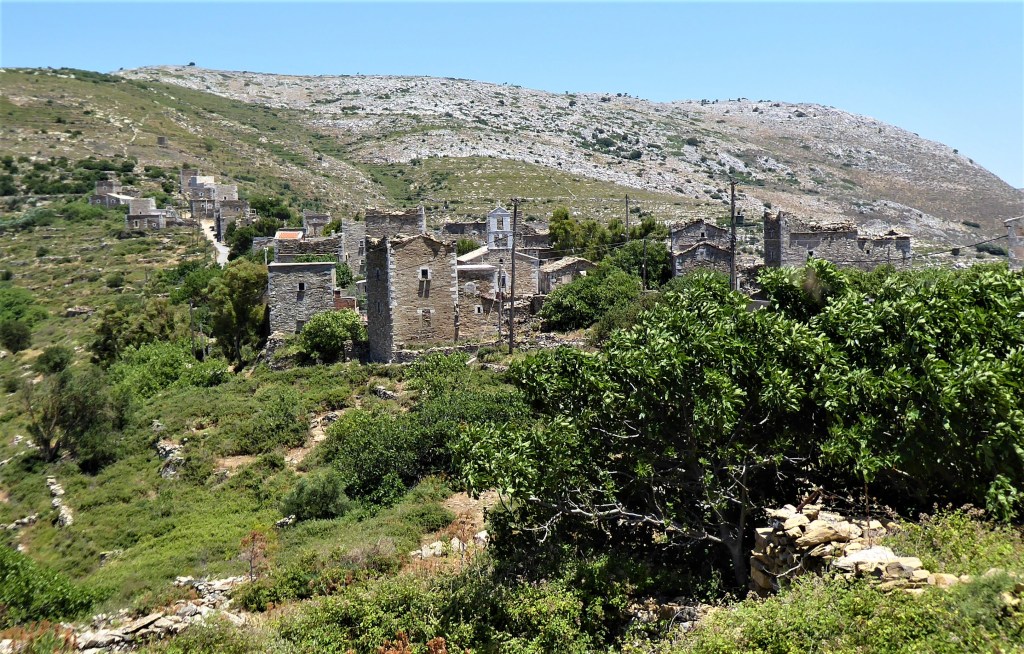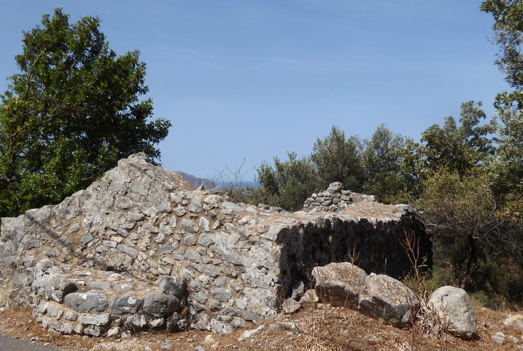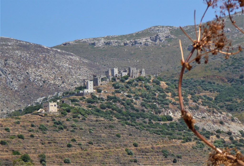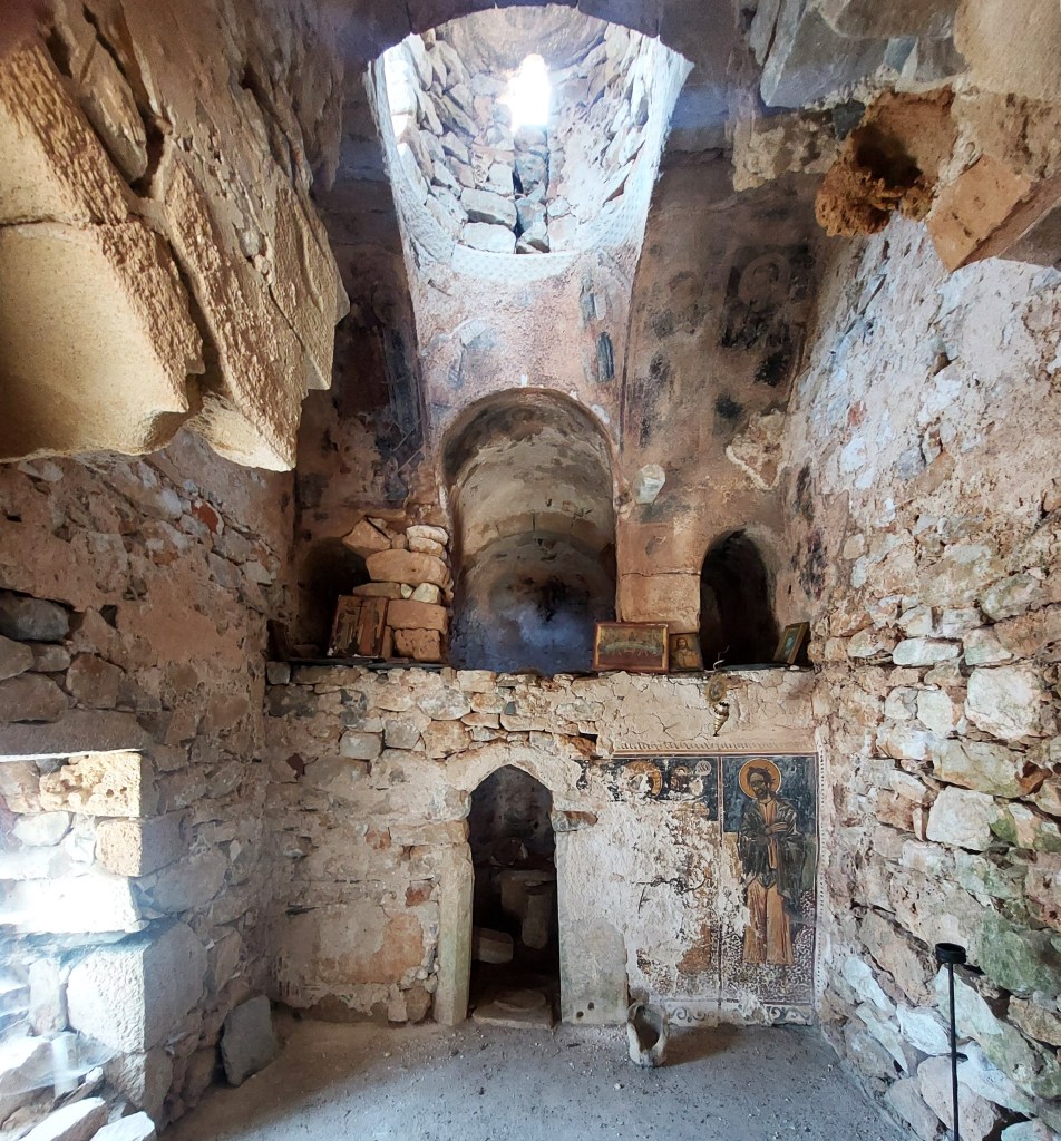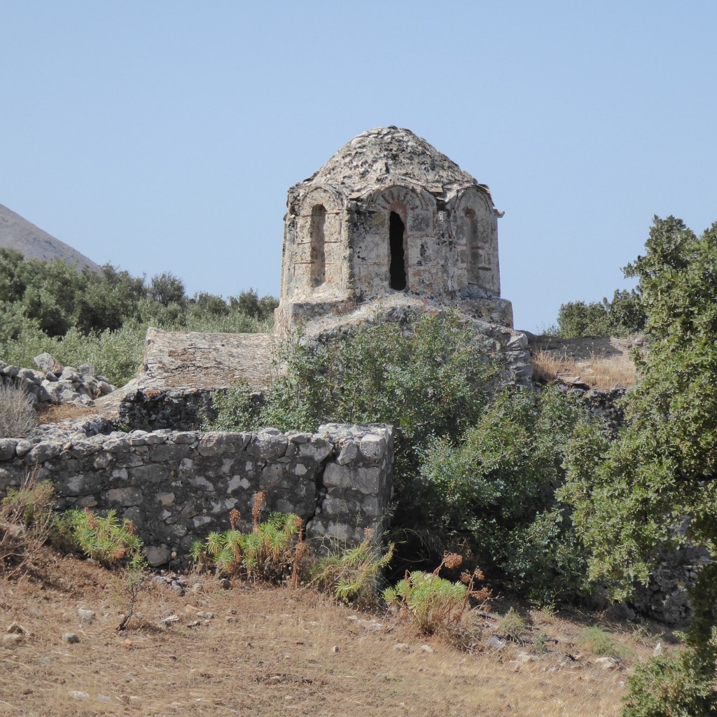 Briki has a ruined tower house and few churches in various states of decay: Agios Nikolaos [13th century] is tiny but you can still see the frescos although they are in a pretty poor state. Agios Giorgios‘ roof has fallen in and is covered in undergrowth and looks a bit sorry for itself. Finally, Agios Leon [10th Century] is hidden in an olive grove off the main road to the left as you enter the village from the north. You have to battle your way through the undergrowth to get inside through the tiny entrance.