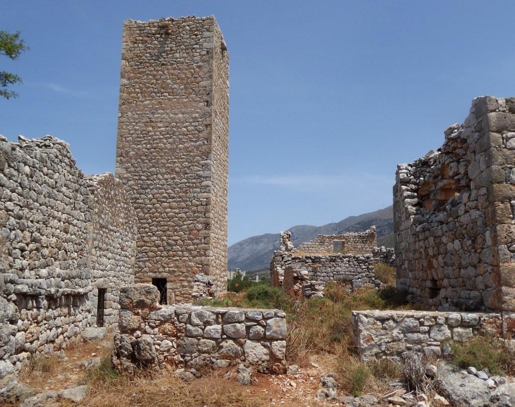 Mina has some lovely tower houses dotted around and is mentioned by Patrick Fermor in his celebrated book- Mani. Polemitas has a couple of tiny churches adjacent to each other- Church of Archangel Michael and Agios Nikolaos which are both likely to be locked but you may be able to see inside through the iron doors. The defensive settlement of Agios Giorgios which is just off the main road on the way to Mezapos is also worthy of a visit. There is a central tall tower surrounded by smaller houses all in various states of ruin. Some areas are cordoned off as the buildings are in an unsafe condition.