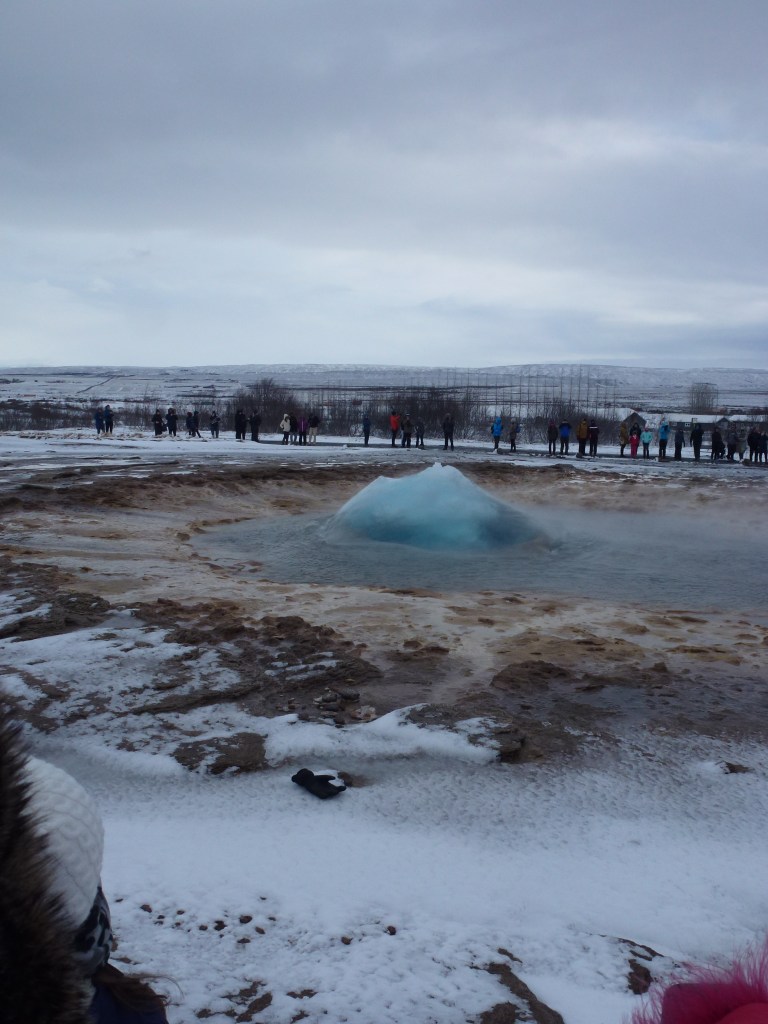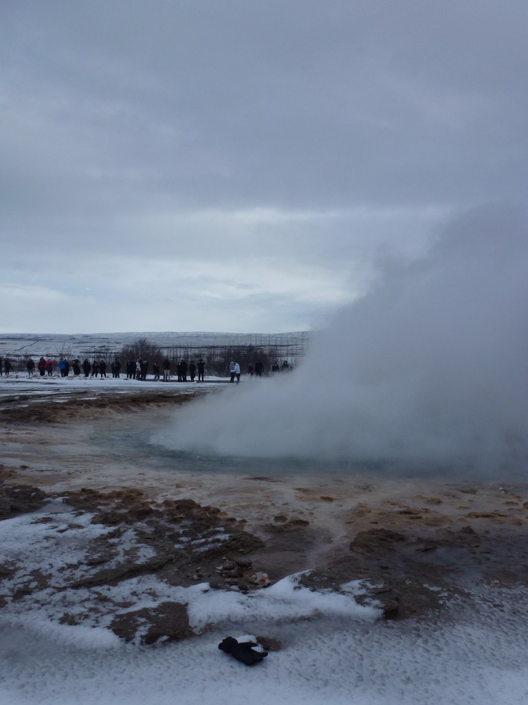 Geysir has gone rather quiet since Victorian era tourists blocked it up by throwing rocks into it but luckily Strokkur is still erupting regularly. We can stay here for hours, it’s mesmerising.