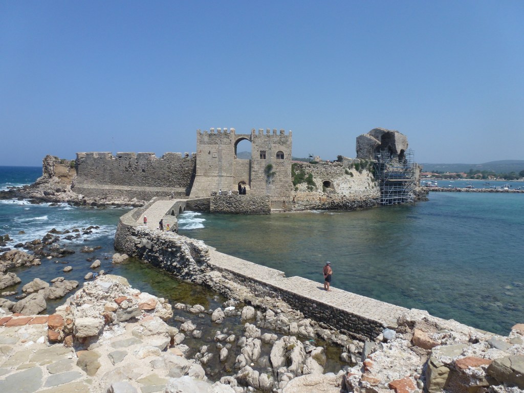My wife, Leashia, and I had our honeymoon in The Peloponnese on mainland Greece in 2013. A package holiday to Finikounda, a small, touristy but charming resort in the Messinia region. [If you think of The Peloponnese as a four fingered hand, this is near the bottom of the first finger on the West side]. Although we enjoyed our stay there, our holiday was enhanced hugely when we hired a car and travelled to Nafplio [Argolis], The Mani [southern finger of Messenia] and other amazing places such as Polilimnio in central Messenia, Lousios Gorge [Arcadia], Epidavros which is near Nafplio and many more.