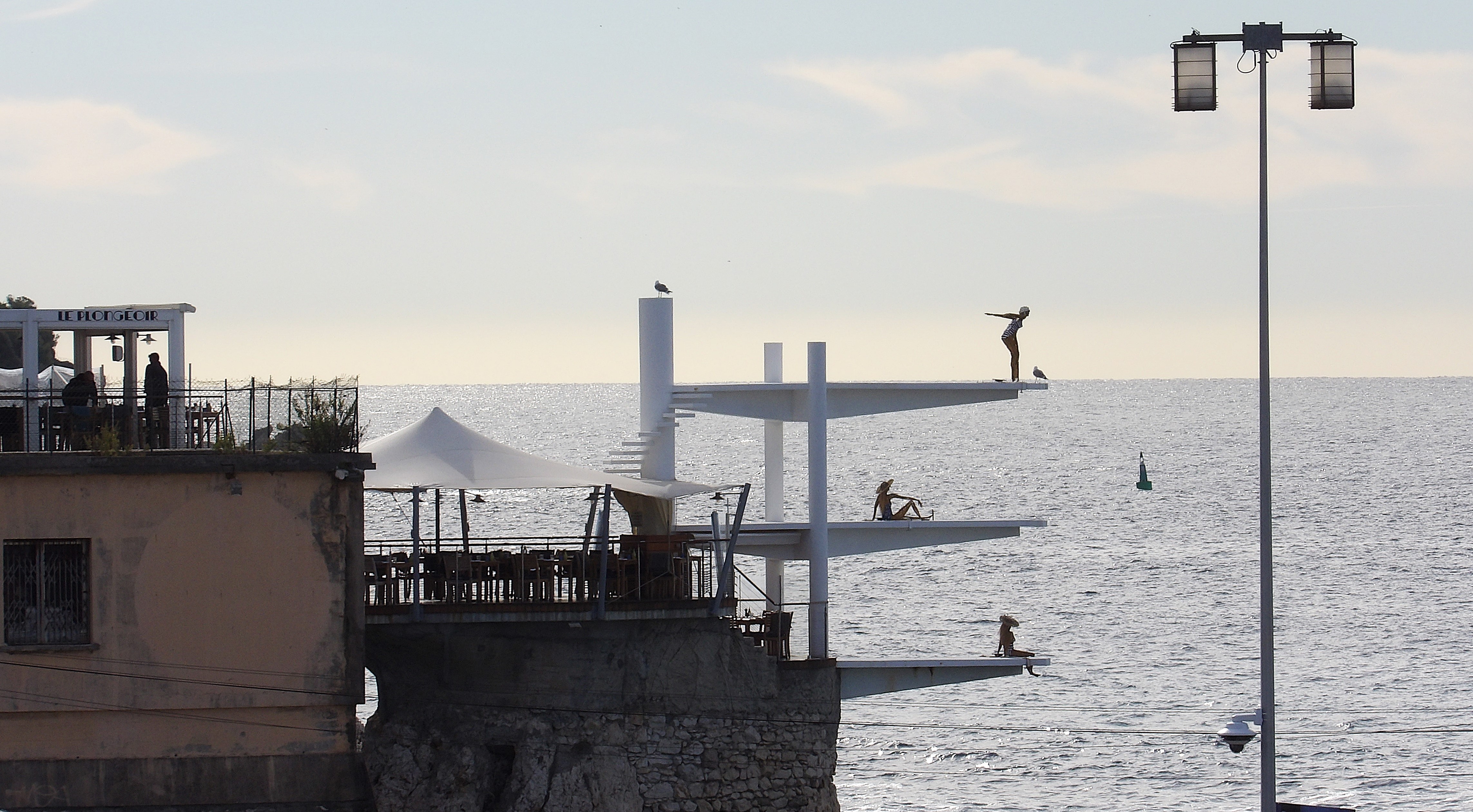 The well known [and trendy] restaurant Le Plongeoir is situated to the east of the port and is an ideal place to start for a walk around the bay. The restaurant has wonderful views although we were not tempted on this occasion. The architect René Livieri created the iconic diving boards and figures in the 1940’s. Plage de Ponchettes, a public beach on the west of the port did look lovely, again we were not tempted- well it was late october!