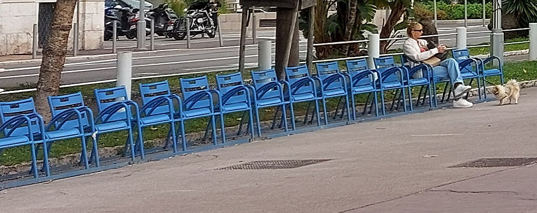 The Promenade des Anglais is 7km long and was originally created in the early 19th century to link Nice Old Town to a British Colony. It had a make-over in the 1930’s which is essentially what we have now, a long and wide popular place to have a stroll [or run if you are that way inclined]. The promenade seemed to get less busy the further west we walked. The Monument aux Morts is an evocative World War 1 memorial facing the promenade. It was built in honour of the nearly 4000 citizens of Nice who died in the conflict. It’s a large structure built into Castle Hill and is lit up at night in patriotic colours.