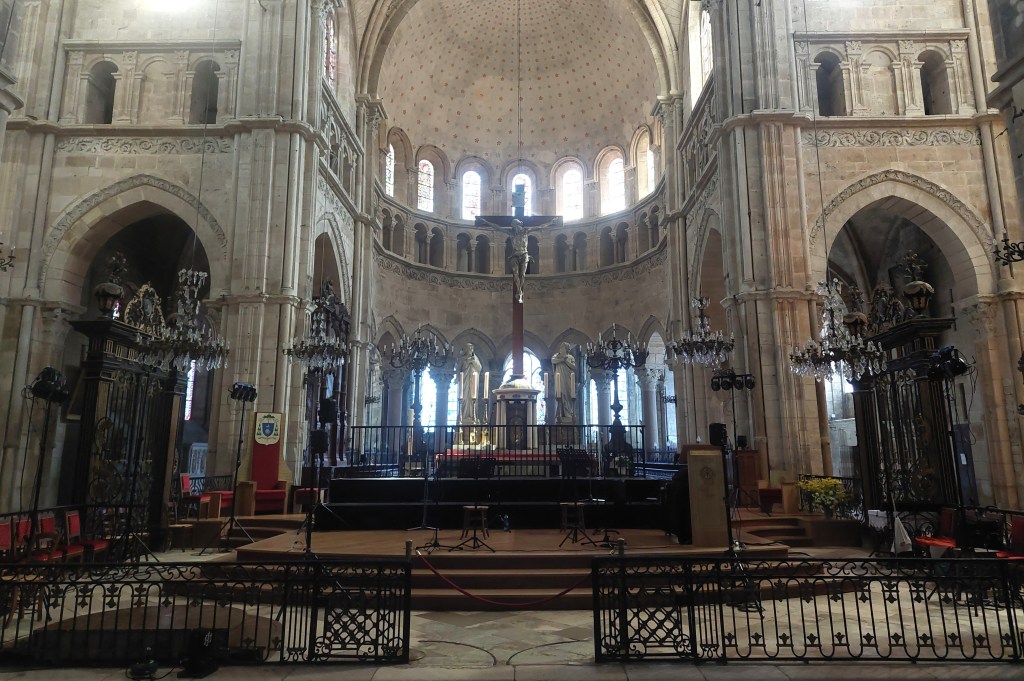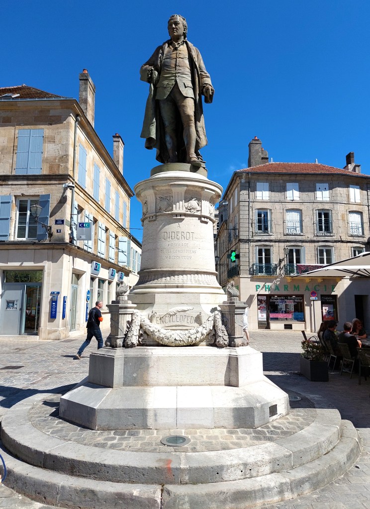 Langres was really lovely, with cobbled streets and an attractive square partially flanked with brasseries. There is a museum and the 18th century Cathédrale Saint-Mammès which has the hugest front door! The town’s claim to fame is that it was the birthplace of the encylopedist Diderot, and his statue is in the main square. We had a great lunch in view of Monsieur Diderot at Cafe Brasserie Le Foy.