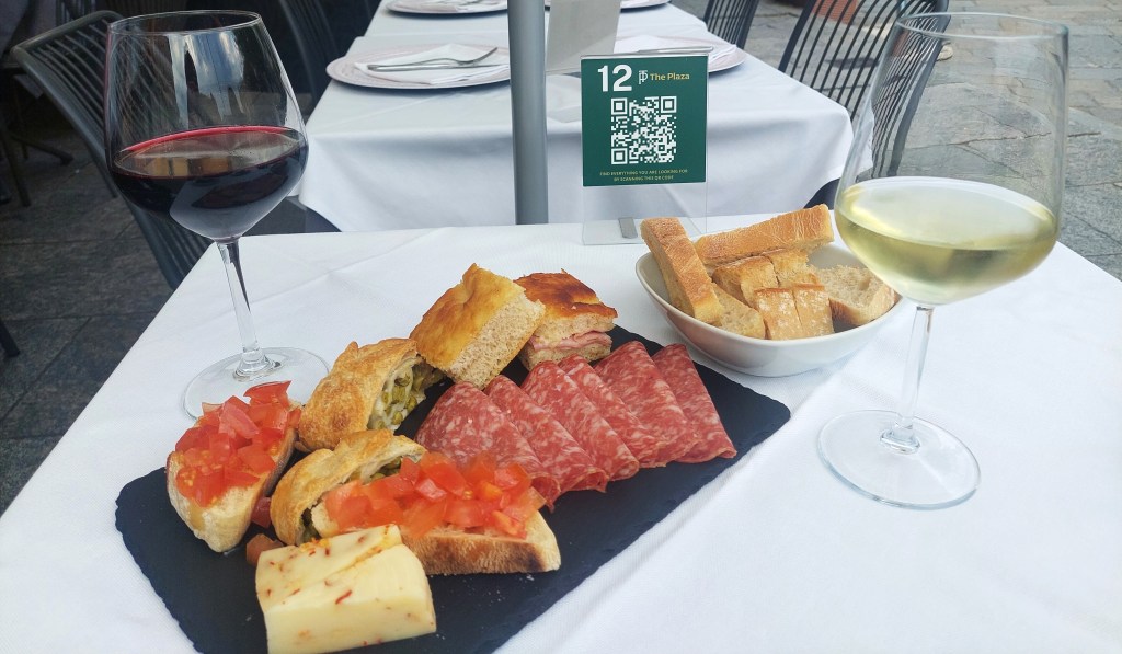 Back in Como we enjoyed a pleasant drinky and nibbles [stuzzichini] at The Plaza Bar in Piazza Cavour. The Italians can be very generous with nibbles [stuzzichini] served with drinks and it can be quite filling! We ended the evening with a superb dinner at Plazza Roma Ristorante Como in Piazza Roma before heading back to our dark, damp accommodation.