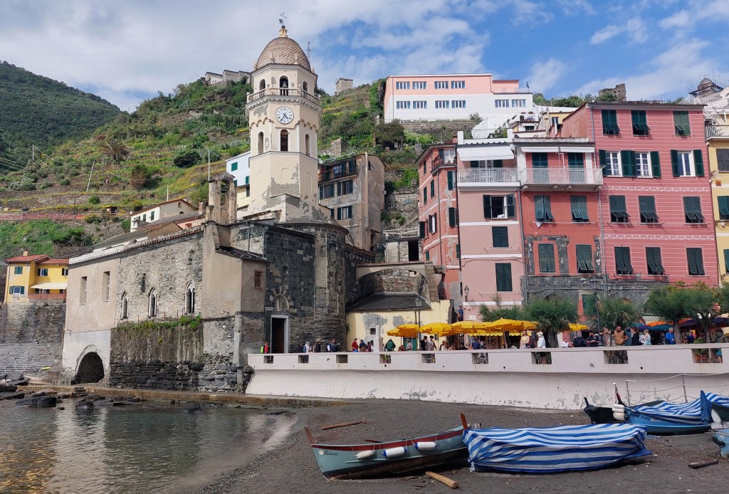 Vernazza was busy but delightful, there are a multitude of narrow lanes squeezed between the tightly packed buildings and the view from the watchtower was great.