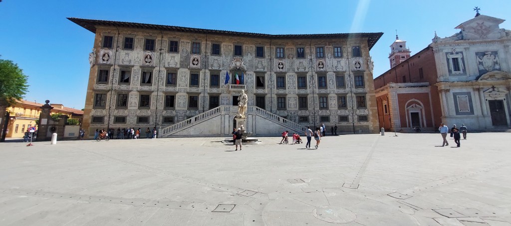 The famous tower is flanked by the equally stunning Duomo and Baptistry. Construction of the Tower commenced in 1173, the Bapistry in 1152 and the Duomo is even older with work commencing in 1064. It was very busy which is to be expected, so we walked around to the quieter side past people taking cheesy photos pretending to hold up the tower with an outstretched hand [bit boring], or pretending it’s a huge phallus [quite funny]. We opted not to queue and pay the large sum to go inside the buildings and contented ourselves with taking it all in from the outside. After walking around the Duomo and tower we meandered back through Pisa taking in the lesser visited sights, well away from the crowds.