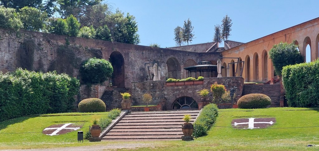 We took a stroll past Torre Guinigi adorned with an oak tree and along part of the huge walls where we glimpsed the beautiful Palazzo Pfanner [see photos below] and we ended the day with an al fresco dinner at Trattoria da Giulio.